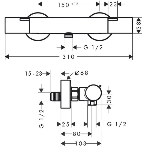 Hansgrohe Ecostat Fine Mitigeur thermostatique de douche - en saillie - noir mat