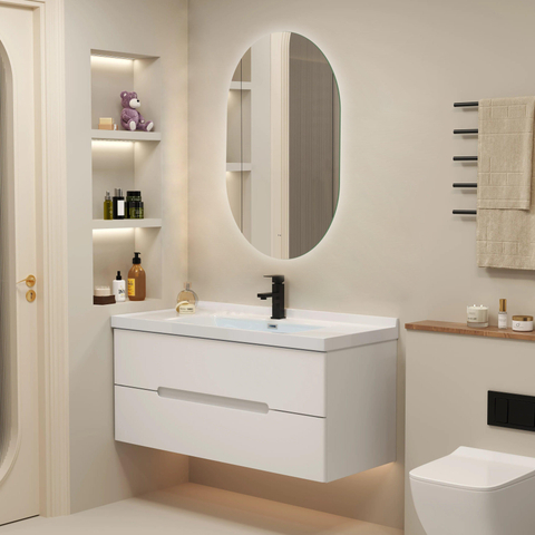 La forme ovale et le design fin confèrent à ce miroir une élégance intemporelle qui donne immédiatement à votre salle de bains un aspect chic. L’éclairage LED indirect est subtilement intégré et crée une lumière douce et d’ambiance qui éclaire l’espace de manière naturelle. Cela évite les ombres dures et crée une atmosphère agréable, idéale pour le maquillage ou le rasage. Grâce à la finition de haute qualité et au design épuré, ce miroir s’intègre facilement dans différents styles de salle de bains, du moderne au classique.