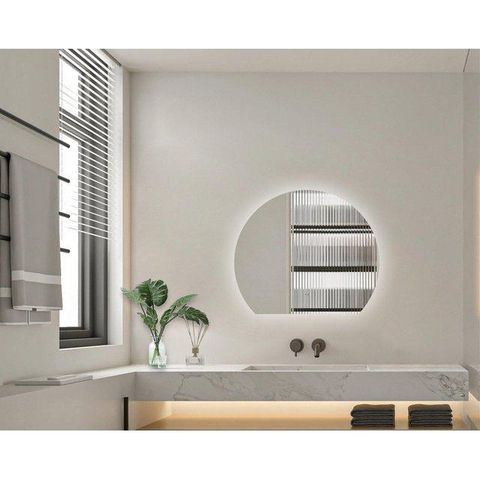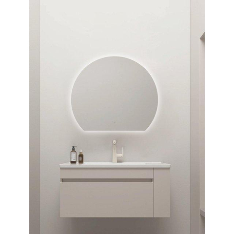 Saniclass Aura Miroir de salle de bains - 60x51.2cm - semi-rond - horizontal / vertical - éclairage LED indirect - miroir chauffant - Infrarouge