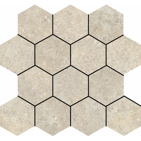 Baldocer Cerámica Stoneland Ivory mosaïque hexagonale sur filet de 29x27cm