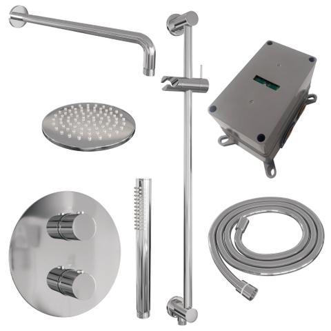 BRAUER Chrome Edition douche thermostatique encastrée - 3 voies - rond - ensemble 87 - douche principale de 20 cm - bras mural courbé - douchette à main - flexible de douche - barre de douche intégrée - chrome