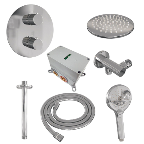 BRAUER Chrome Carving douche thermostatique encastrée pluie - 3 voies - rond - set 83 - 20cm douche principale - bras plafond - douchette 3 positions - flexible de douche - coude mural - chrome