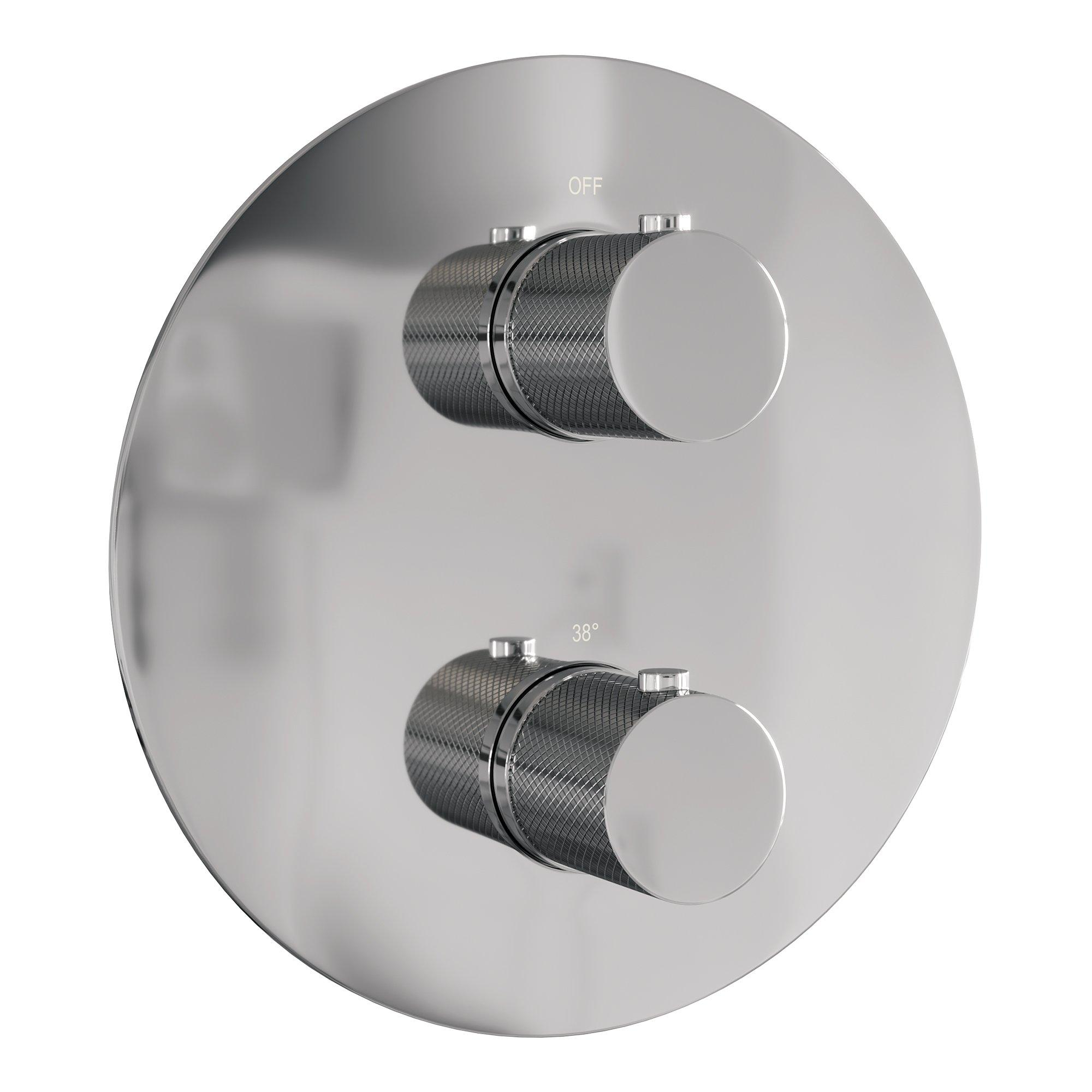 BRAUER Chrome Carving douche de pluie encastrée thermostatique - 3 voies - ronde - ensemble 88 - pomme de douche principale 30cm - bras mural courbé - douchette barre - flexible de douche - barre de douche intégrée - chrome
