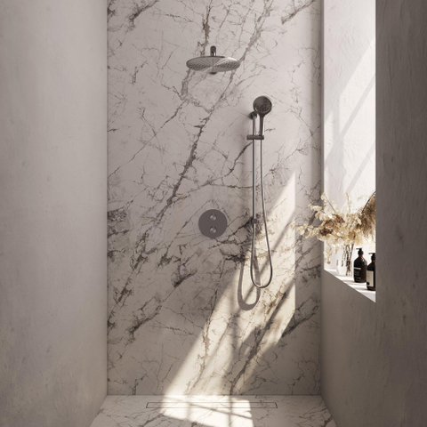 BRAUER Brushed Carving douche de tête encastrée thermostatique - 3 voies - ronde - set 92 - douche de tête 30 cm - bras mural droit - douchette à main 3 jets - flexible de douche - barre de douche intégrée - acier inoxydable brossé PVD