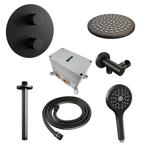 BRAUER Black Carving douche thermostatique encastrée - 3 voies - rond - ensemble 83 - douche principale de 20 cm - bras plafond - douchette à main 3 positions - flexible de douche - coude mural - noir mat