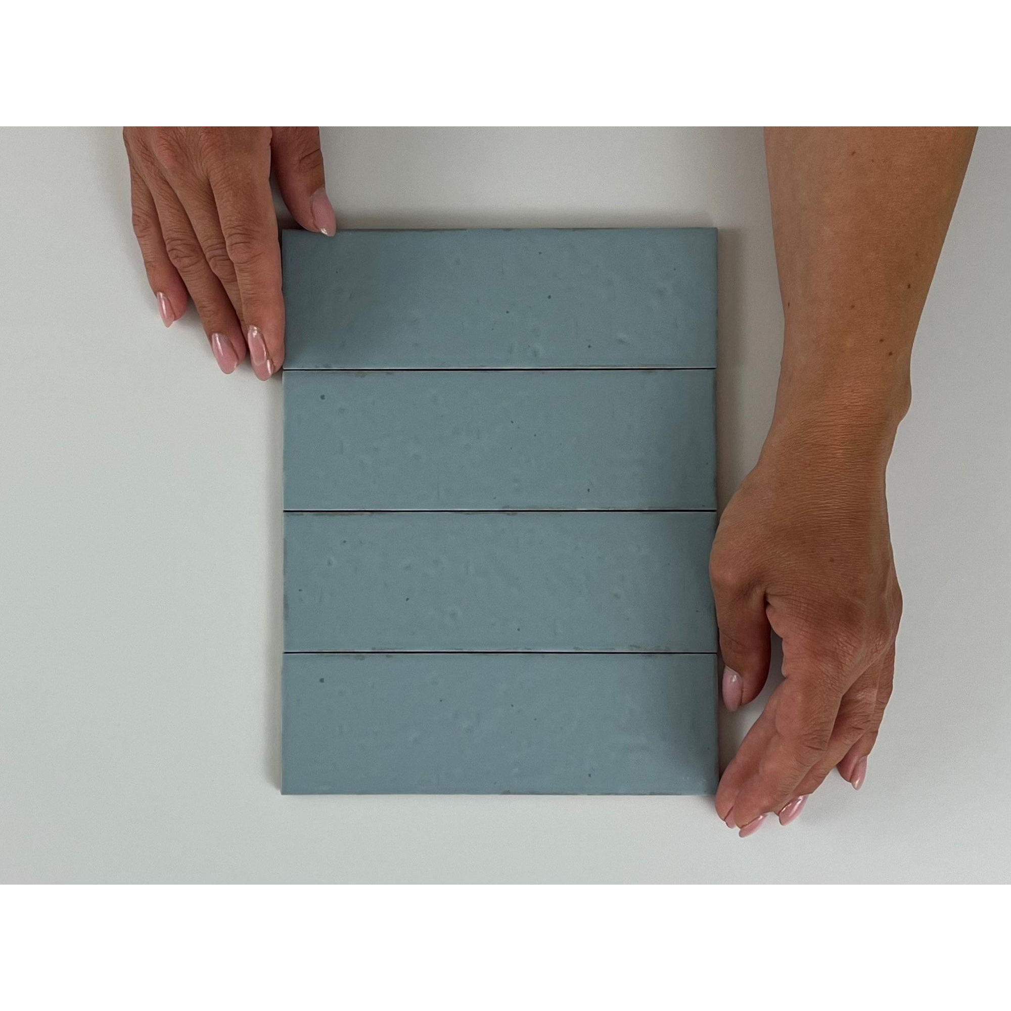 La couleur bleu poudré a été volontairement adoucie, afin que votre intérieur n’ait pas un aspect criard ou chargé, mais au contraire équilibré et reposant. Idéal si vous souhaitez créer une ambiance spa dans la salle de bains ou un mur de cuisine qui se distingue par son raffinement plutôt que par des contrastes vifs. En combinaison avec des sanitaires blancs, du bois clair, des robinets noirs mats ou en inox, la couleur est encore mieux mise en valeur. La finition mate évite les reflets de lumière trop durs, ce qui est plus agréable pour les yeux, surtout dans les salles de bains avec spots ou beaucoup de lumière du jour. Vous obtenez ainsi un carreau mural qui n’est pas seulement beau sur les photos, mais tout aussi agréable au quotidien, à voir et à toucher.Formats ludiques et schémas de pose pour votre mur unique
