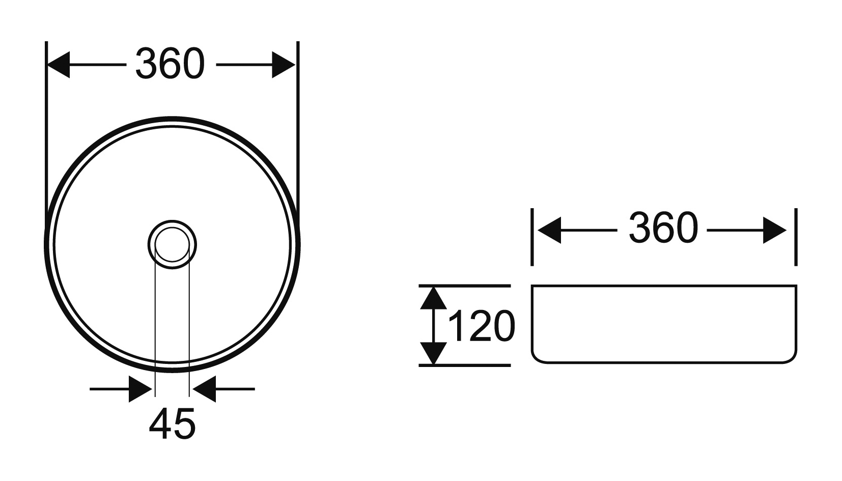 - Vasque ronde avec un diamètre de 36 cm et une hauteur de 12 cm, idéale pour divers meubles vasques