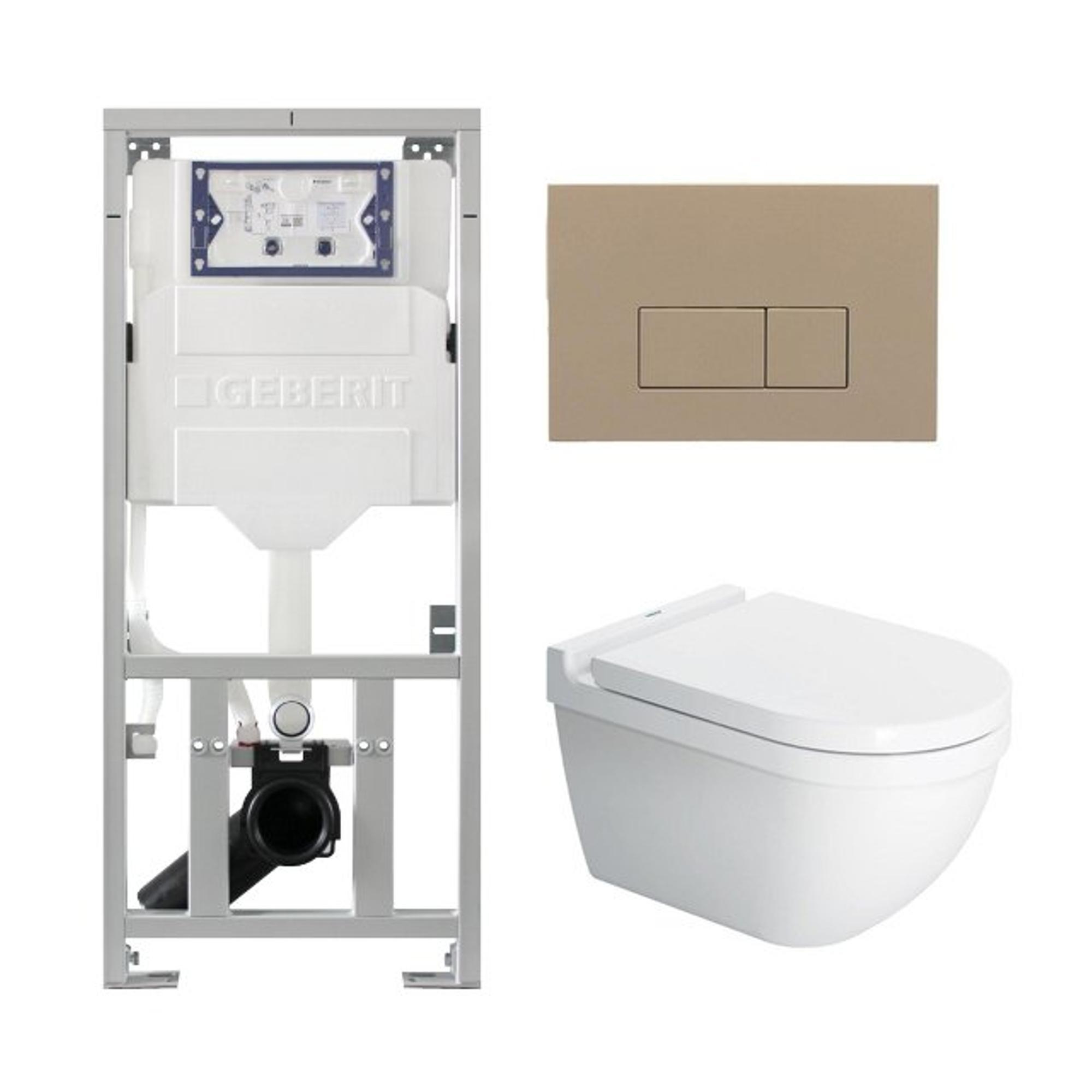 Pack WC Duravit Starck 3 - réservoir encastré Geberit - abattant Saniclass softclose - plaque de commande QeramiQ avec boutons rectangulaires taupe - blanc