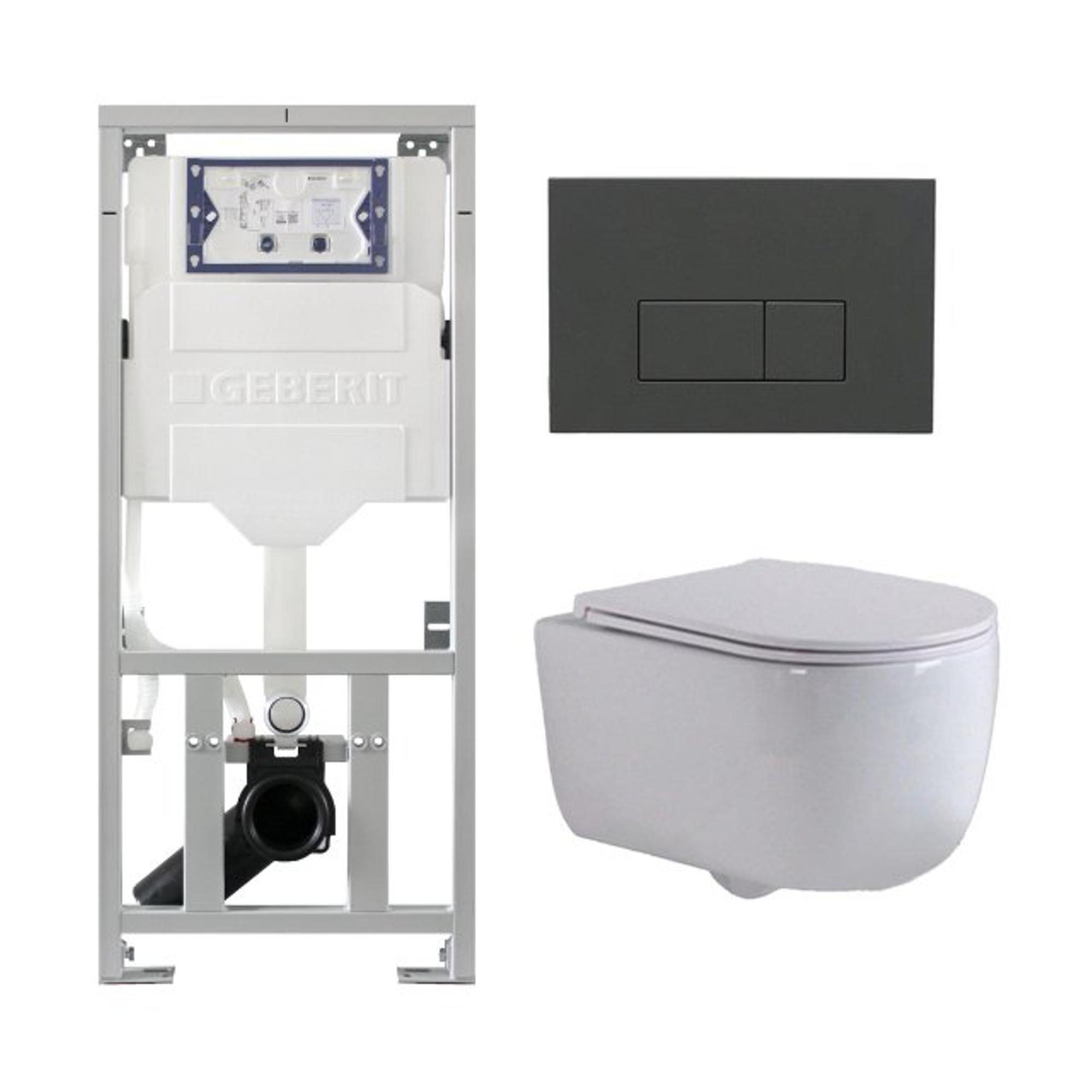 QeramiQ Dely Swirl Pack WC suspendu - 36.3x51.7cm - bâti-support Geberit UP320 - abattant slim - plaque de commande anthracite mat - boutons rectangulaires - blanc brillant