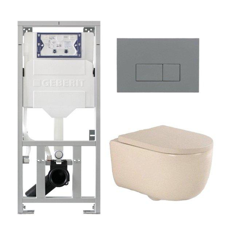 QeramiQ Dely Swirl Pack WC suspendu - 36.3x51.7cm - bâti-support Geberit UP320 - abattant 35 mm - plaque de commande gris clair - boutons rectangulaires - beige