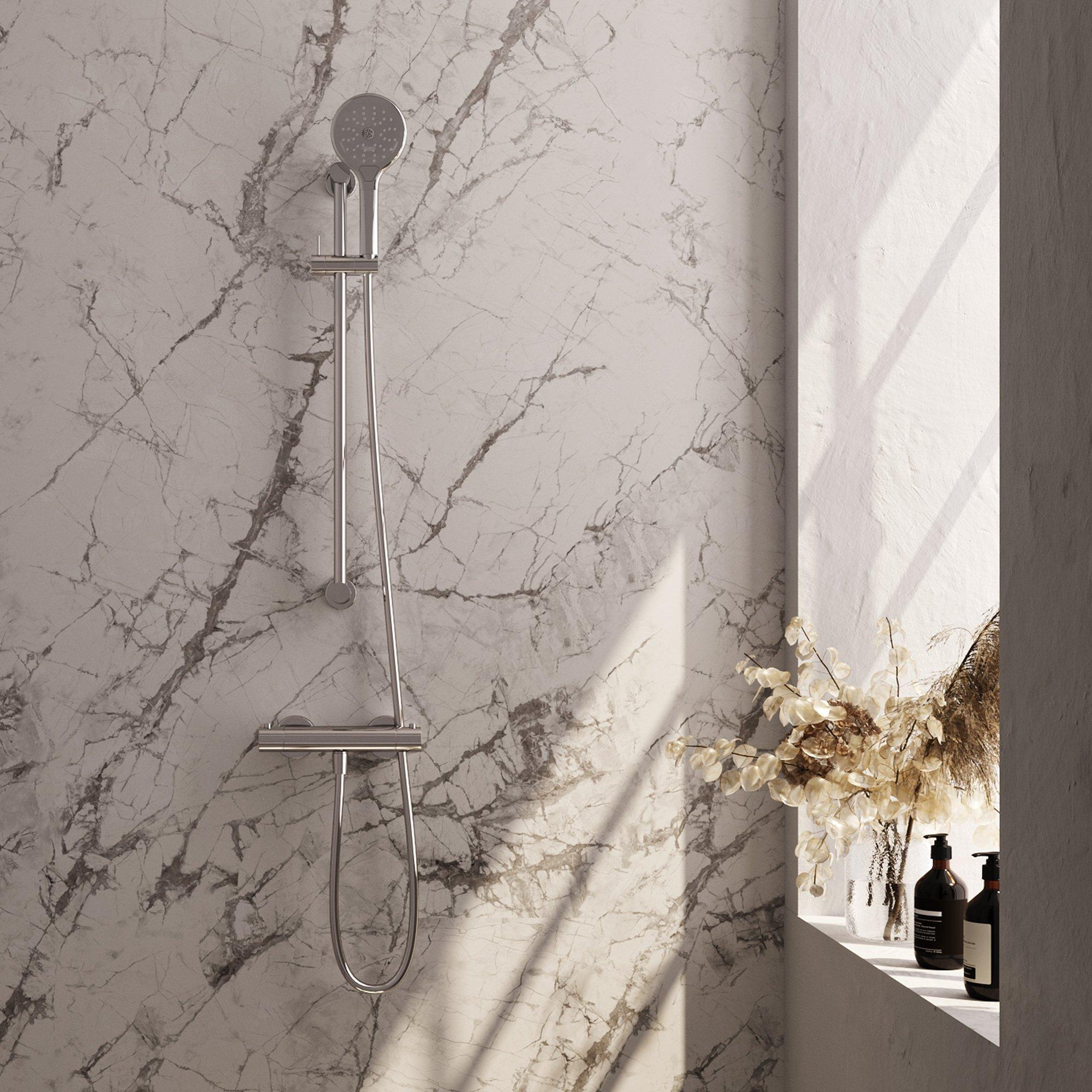 Brauer Chrome Edition Ensemble de douche thermostatique avec barre curseur et douchette Rond 3 jet flexible lisse 150cm Chrome