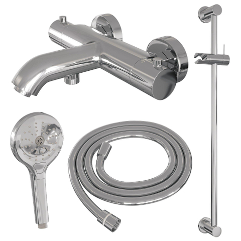 Brauer Chrome Edition Robinet Baignoire Sur Établi - barre de douche - 2 voies - 2 boutons lisses - douchette ronde 3 positions - chrome
