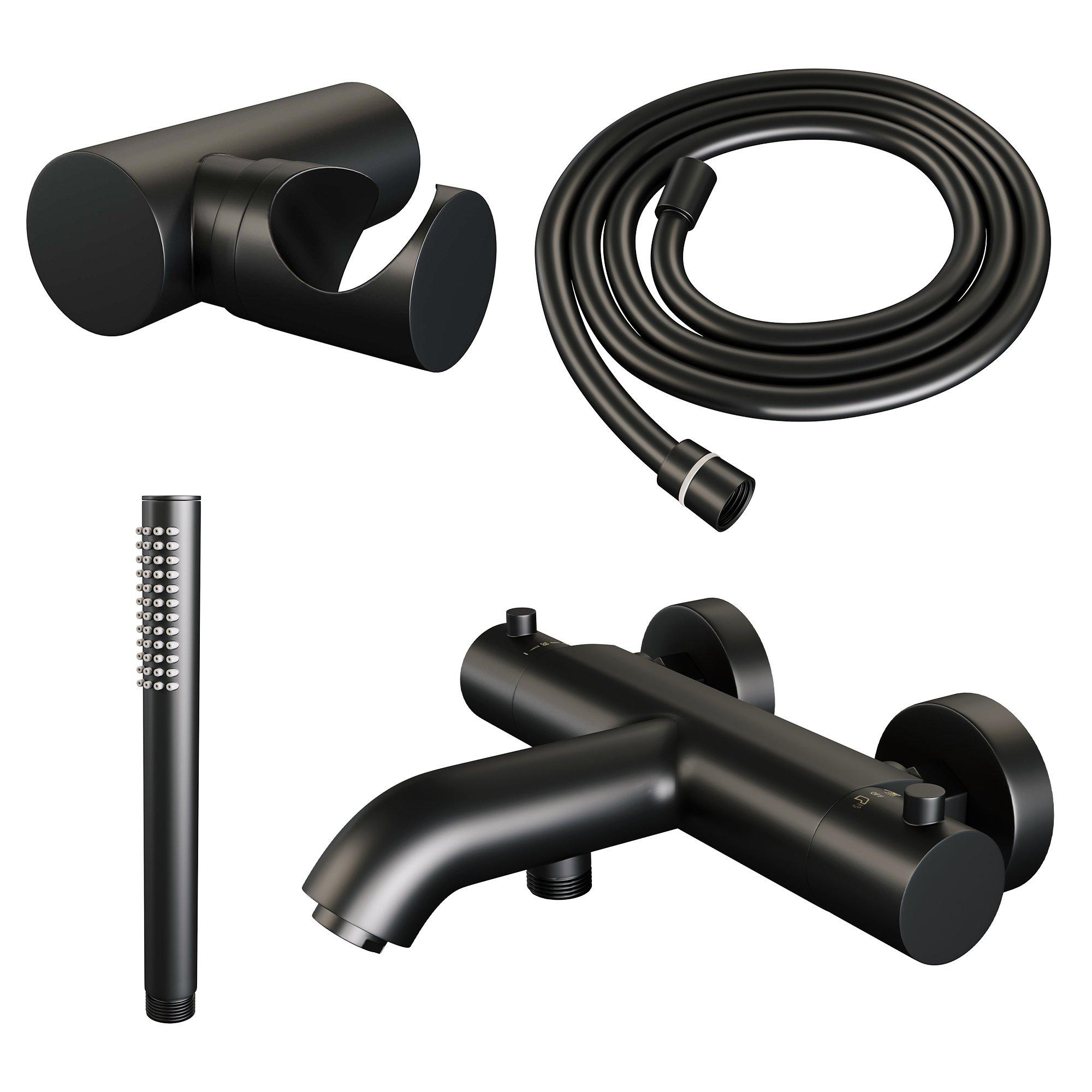 Robinet de baignoire Brauer Black Edition - ensemble de douche - douchette à main 1 fonction - bouton lisse - noir mat