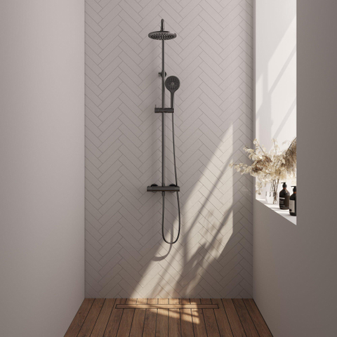Brauer Gunmetal Carving Douche pluie 20cm thermostatique mural avec douchette rond 3 jets flexible 150cm lisse et barre avec curseur Gunmetal brossé PVD