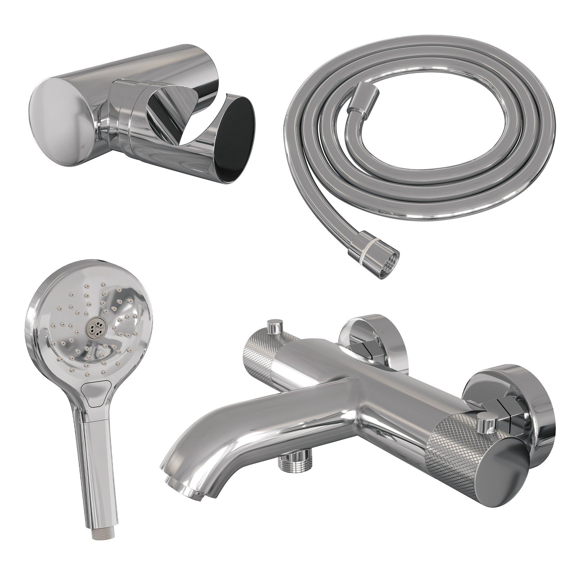 Robinet de baignoire Brauer Chrome - ensemble de douche - douchette ronde 3 positions - bouton carving - chrome