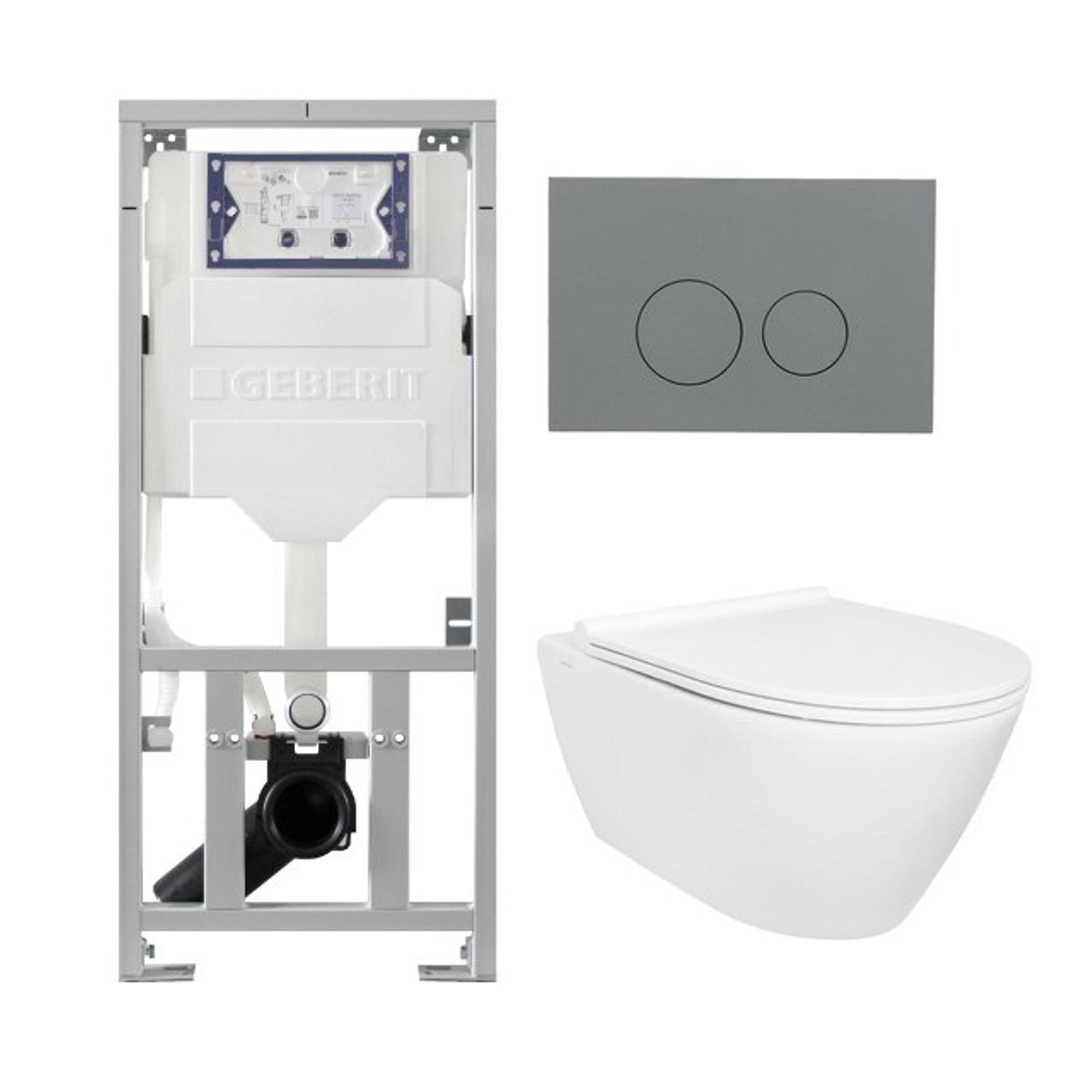 Pack WC QeramiQ Salina - sans bride - réservoir encastré Geberit - WC à fond creux - fermeture douce - déverrouillage rapide - plaque de commande gris clair - boutons ronds - blanc