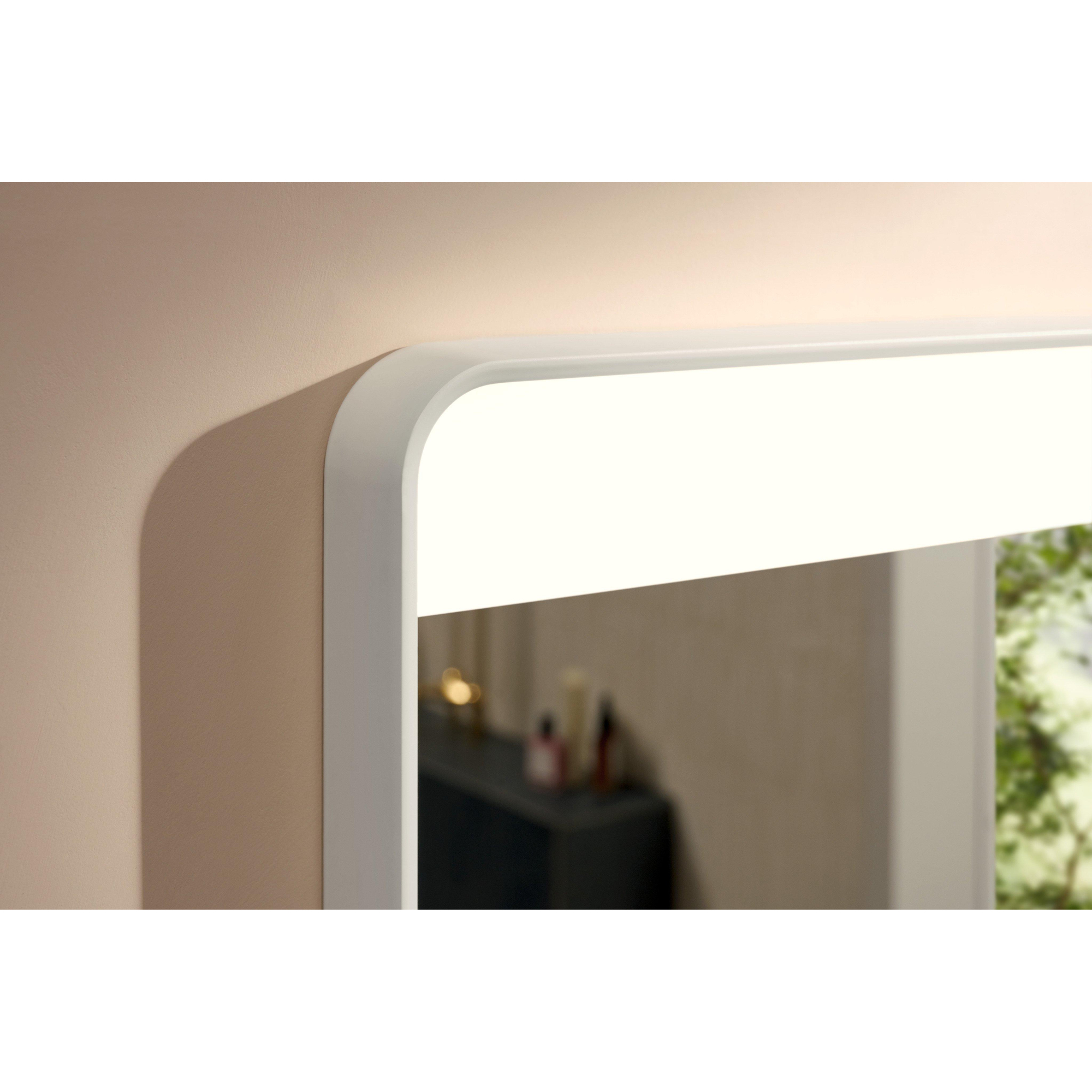 Le cadre blanc mat de ce miroir de salle de bains Hansgrohe Xarita Lite Q s'accorde parfaitement avec les salles de bains minimalistes et scandinaves utilisant des carreaux clairs et des tons neutres. La forme rectangulaire de 100x70 cm offre une grande surface de miroir au-dessus d'une vasque ou d'un meuble vasque, agrandissant visuellement l'espace et apportant plus de lumière. Grâce à l'éclairage led intégré, le verre est mis en valeur et un discret halo lumineux apparaît le long des bords du miroir. Ce miroir mural avec éclairage forme un ensemble cohérent avec un meuble de salle de bains moderne, une douche à l'italienne et un radiateur design.