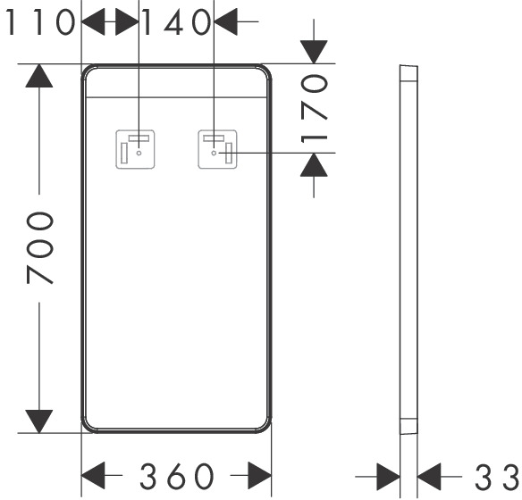 Hansgrohe Xarita Lite Q Miroir - 36x70cm - éclairage led - Horizontal - interrupteur mural - Blanc mat