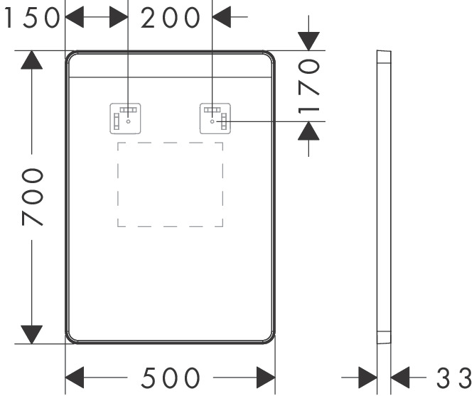 - Miroir mural avec éclairage Hansgrohe Xarita Lite Q Miroir - 50x70cm - éclairage led - Horizontal - interrupteur mural - Blanc mat