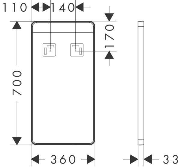 Hansgrohe Xarita Lite Q Miroir - 36x70cm - éclairage led - Horizontal - interrupteur mural - Blanc mat