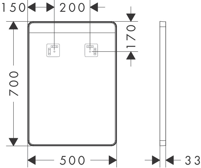 - Hansgrohe Xarita Lite Q miroir - 50x70cm - éclairage led - Horizontal - interrupteur mural - Noir mat avec éclairage intégré pour miroir de salle de bains