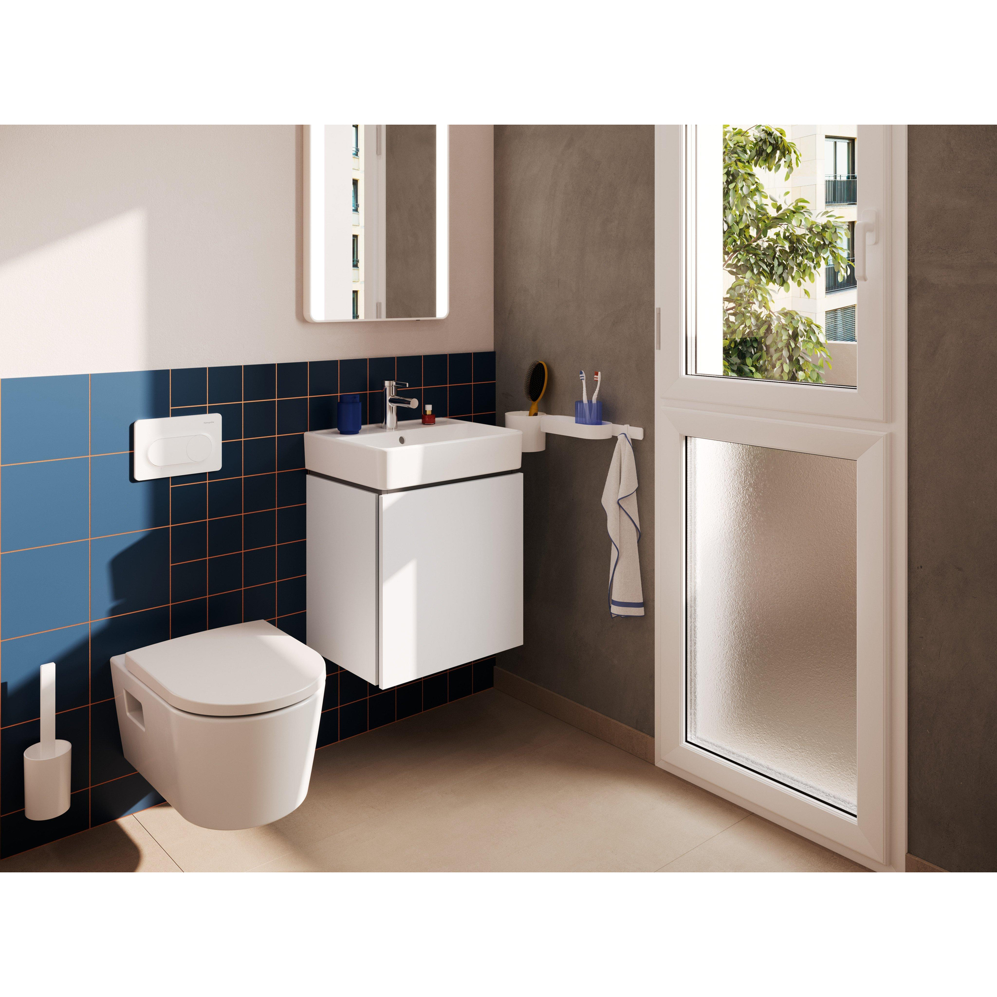 Avec une dimension de 50x39 cm, ce lavabo offre un confort étonnant sans dominer l'espace. La forme rectangulaire avec des angles légèrement arrondis exploite au mieux la largeur disponible, de sorte que vous disposiez de suffisamment de place pour vous laver les mains ou vous rafraîchir le visage, même dans un petit espace WC. Le montage mural libère le sol, ce qui donne non seulement une impression d'espace, mais est également pratique pour le nettoyage. Grâce au trou de robinet central, vous pouvez facilement installer un petit mitigeur de lavabo, tandis que la profondeur est soigneusement étudiée pour limiter les éclaboussures. Vous tirez ainsi le maximum de chaque centimètre, sans faire de compromis sur le confort d'utilisation ou l'esthétique.