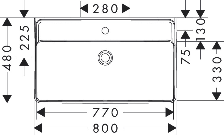 - Sans trop-plein, très approprié en combinaison avec une bonde non obturable pour un look épuré et hygiénique.