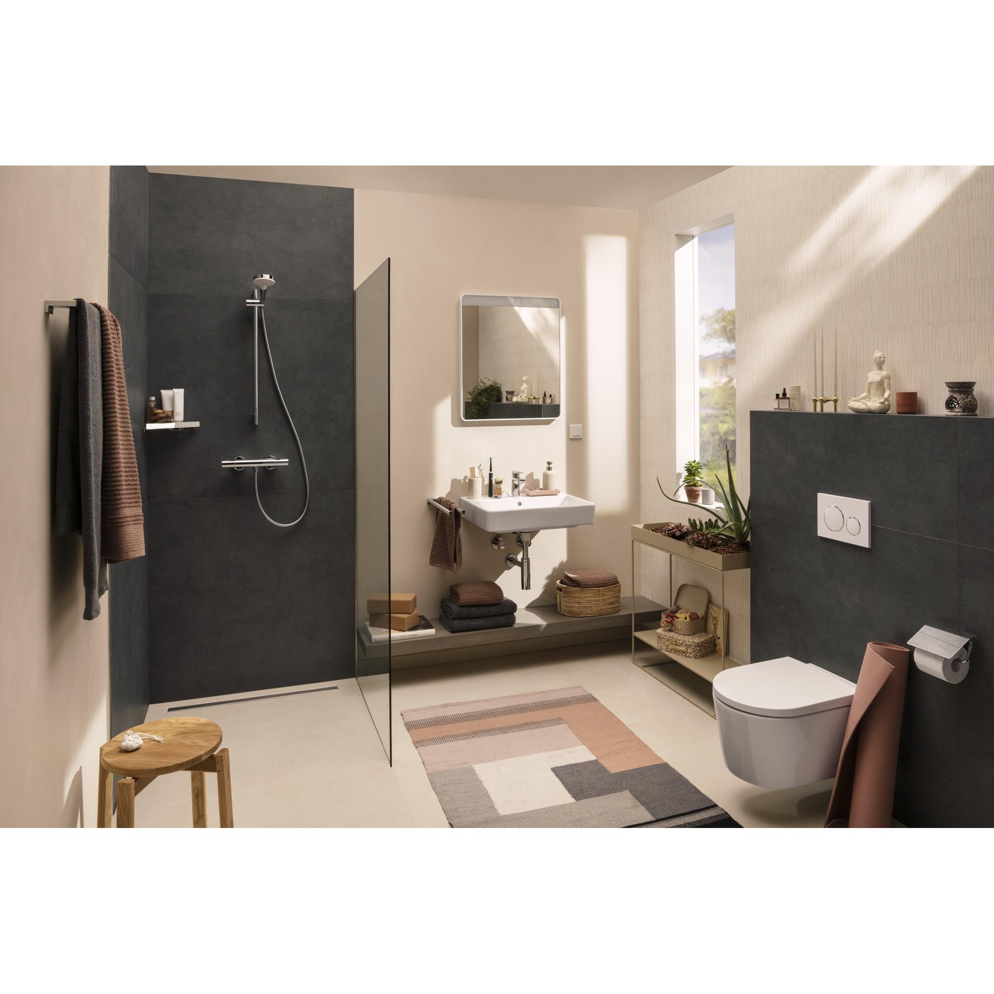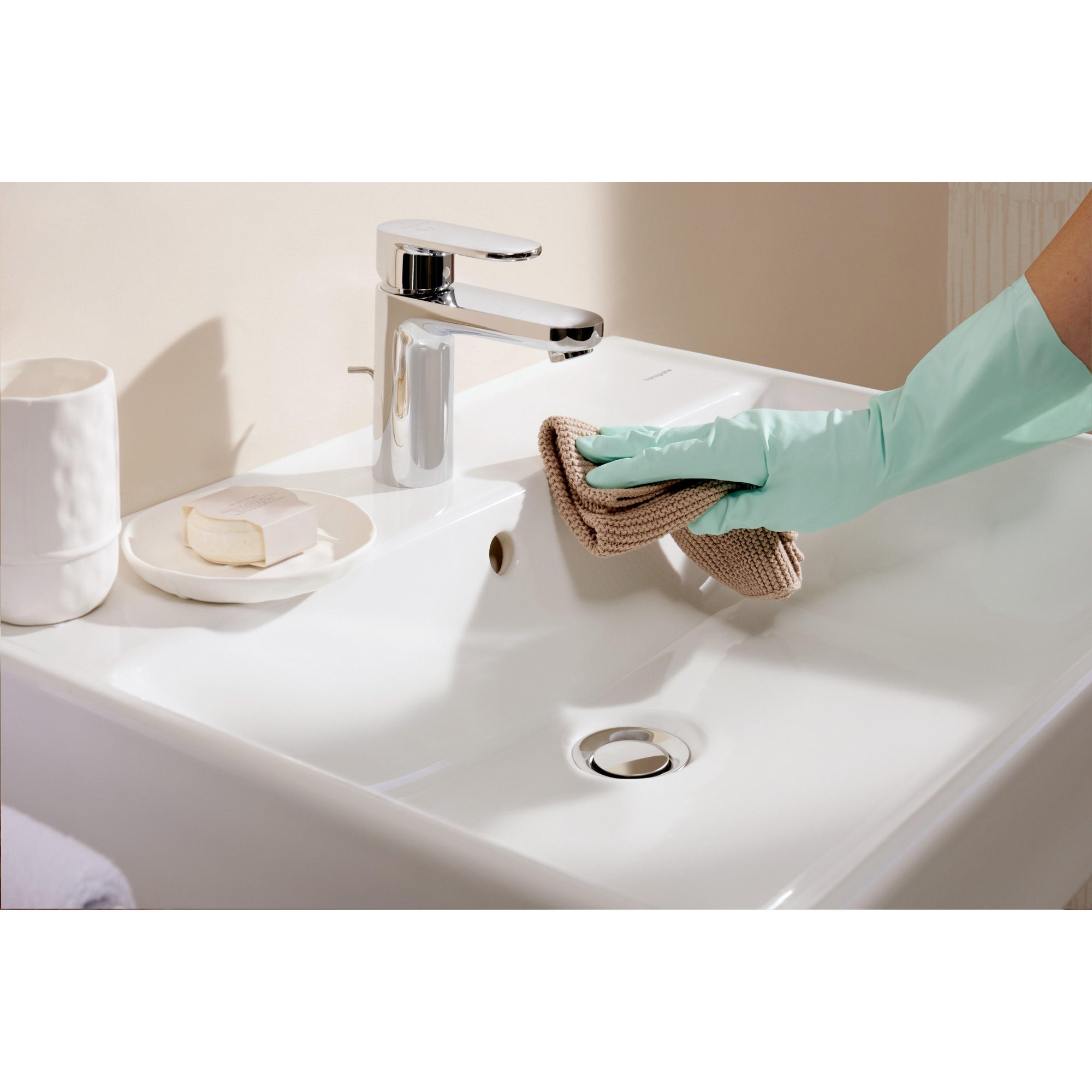 La céramique est un matériau favori dans la salle de bains depuis des décennies, et ce n’est pas un hasard. Sa surface dure et dense est agréable au toucher, très résistante aux rayures et se nettoie facilement avec des produits d’entretien doux. La finition brillante n’offre pas seulement un aspect luxueux, elle fait aussi en sorte que la saleté et les résidus de savon adhèrent moins rapidement. Avec un chiffon doux et un nettoyant sanitaire, vous gardez la surface fraîche et hygiénique sans effort, même en cas d’utilisation intensive. Associée aux angles arrondis et au grand bassin, cela signifie : moins de recoins difficiles, moins de récurage et plus de temps pour simplement profiter de votre salle de bains.