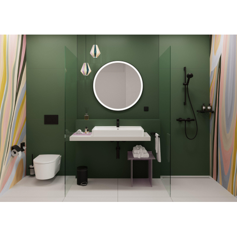 - Montage mural pour un look aéré et spacieux et un nettoyage facile sous le lavabo.
