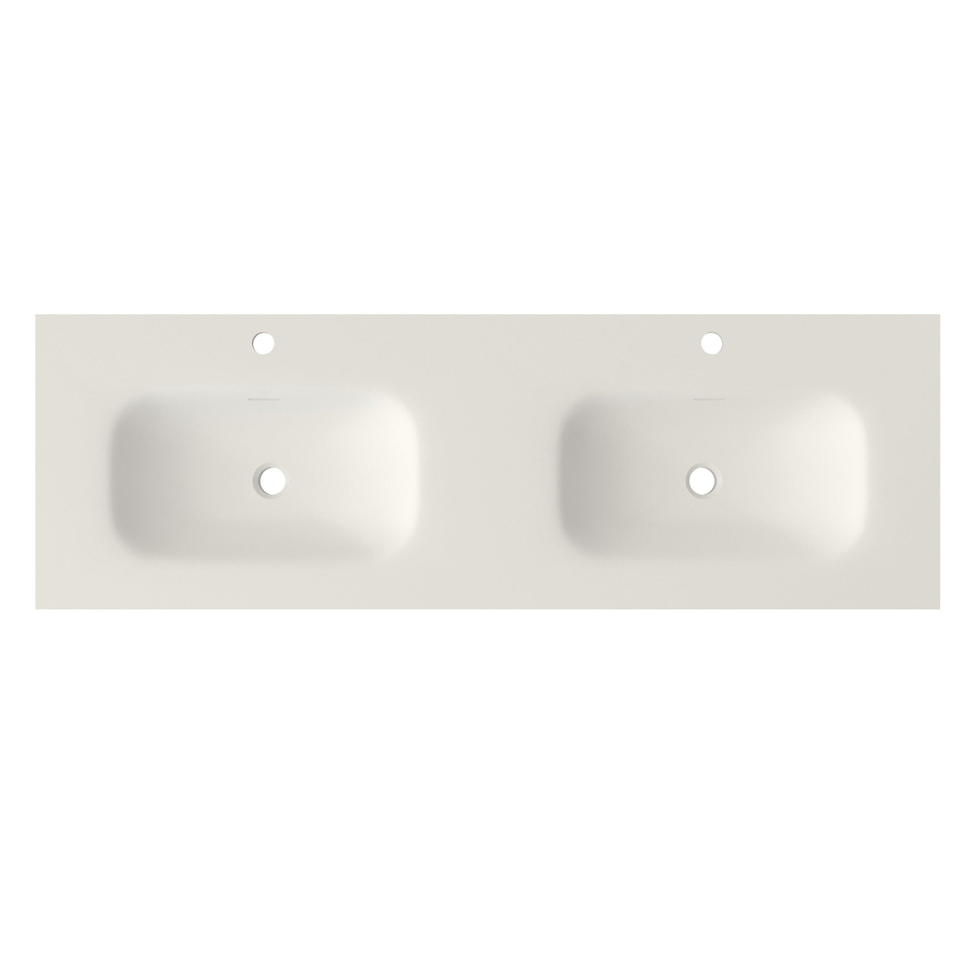 Saniclass Flow Meuble lavabo - 141x46x1.5cm - trop-plein - 2 vasques - 2 trous de robinet - solid surface blanc mat