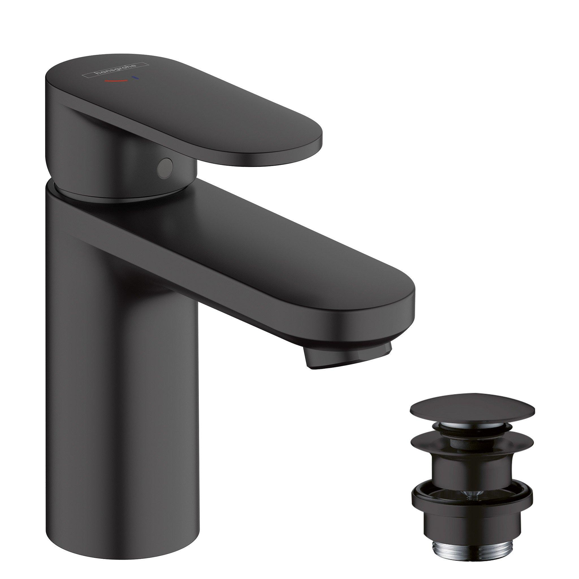 Hansgrohe Vernis Blend Robinet‑mélangeur pour lavabo - 10 cm - mono‑commande - CoolStart - avec bonde d’évacuation - noir mat