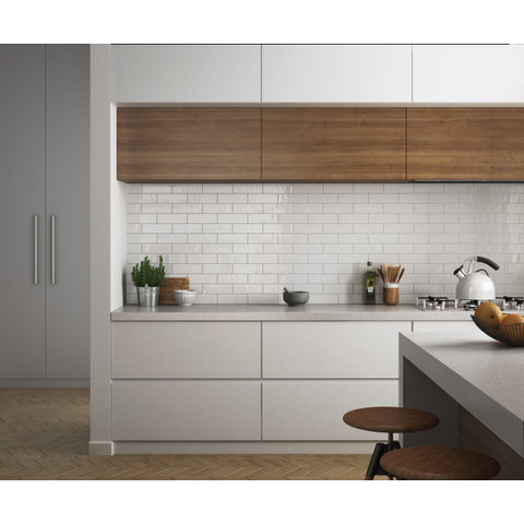 La finition brillante fait magnifiquement refléter la lumière sur le mur, ce qui rend immédiatement votre pièce plus claire et plus vivante. La surface subtilement ondulée et rustique apporte une apparence artisanale, comme si les carreaux étaient faits à la main. Dans une cuisine, vous créez ainsi un charmant mur de fond derrière le plan de travail, tandis que dans la salle de bains, le jeu de lumière et de reflets évoque une ambiance luxueuse, presque digne d’un spa. Comme le carreau n’est pas rectifié, il en résulte un joint doux et naturel, ce qui convient parfaitement à un style campagne, méditerranéen ou vintage.Qualité céramique et entretien facile