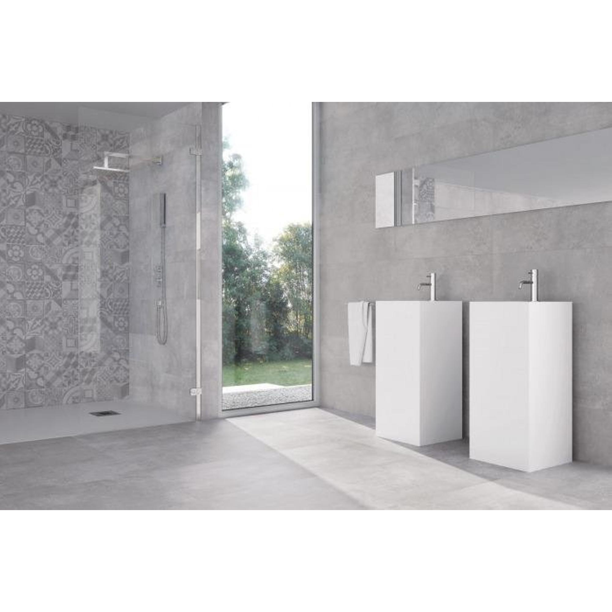 La couleur blanche mate, combinée à un discret effet béton, s’accorde parfaitement avec les salles de bains modernes ou d’inspiration industrielle, mais constitue également une base sûre si vous hésitez encore sur le reste de votre aménagement. La finition mate assure une apparence douce et apaisante, sans reflets gênants de spots ou de lumière du jour, idéale dans un espace où la réflexion de la lumière peut être importante. La teinte neutre se combine facilement avec des matériaux naturels tels que le bois et le béton, mais aussi avec de puissants accents noirs ou au contraire des métaux brillants. Ainsi, vous pouvez varier à l’infini avec vos accessoires et vos meubles, tout en conservant des murs élégants, calmes et intemporels. Pratique si vous souhaitez une allure contemporaine dès maintenant, mais désirez pouvoir faire évoluer facilement l’ambiance de votre salle de bains plus tard.
