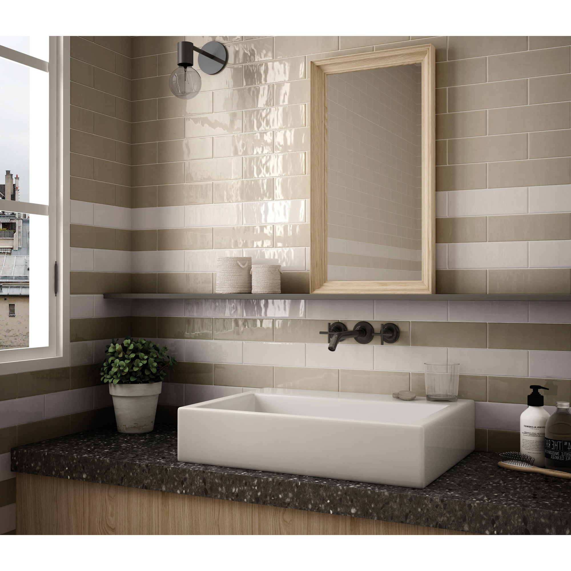 Le format de 20x6,5 cm invite à jouer avec différents schémas de pose. Posez les carreaux de manière droite pour un mur calme et intemporel, ou optez pour une pose en quinconce pour un effet dynamique subtil. Si vous voulez un véritable élément accroche-regard, par exemple derrière le meuble de salle de bains ou comme crédence de cuisine, un motif en chevron ou une pose en appareillage vertical est une magnifique option. Grâce à la forme élancée, vous pouvez créer des accents là où vous souhaitez attirer le regard, sans que l’espace paraisse chargé. Vous adaptez ainsi l’apparence de votre mur de salle de bains ou de votre crédence exactement à votre style d’intérieur et créez un design personnel que vous ne verrez pas facilement chez quelqu’un d’autre.Couleur marron clair chaleureuse avec finition brillante