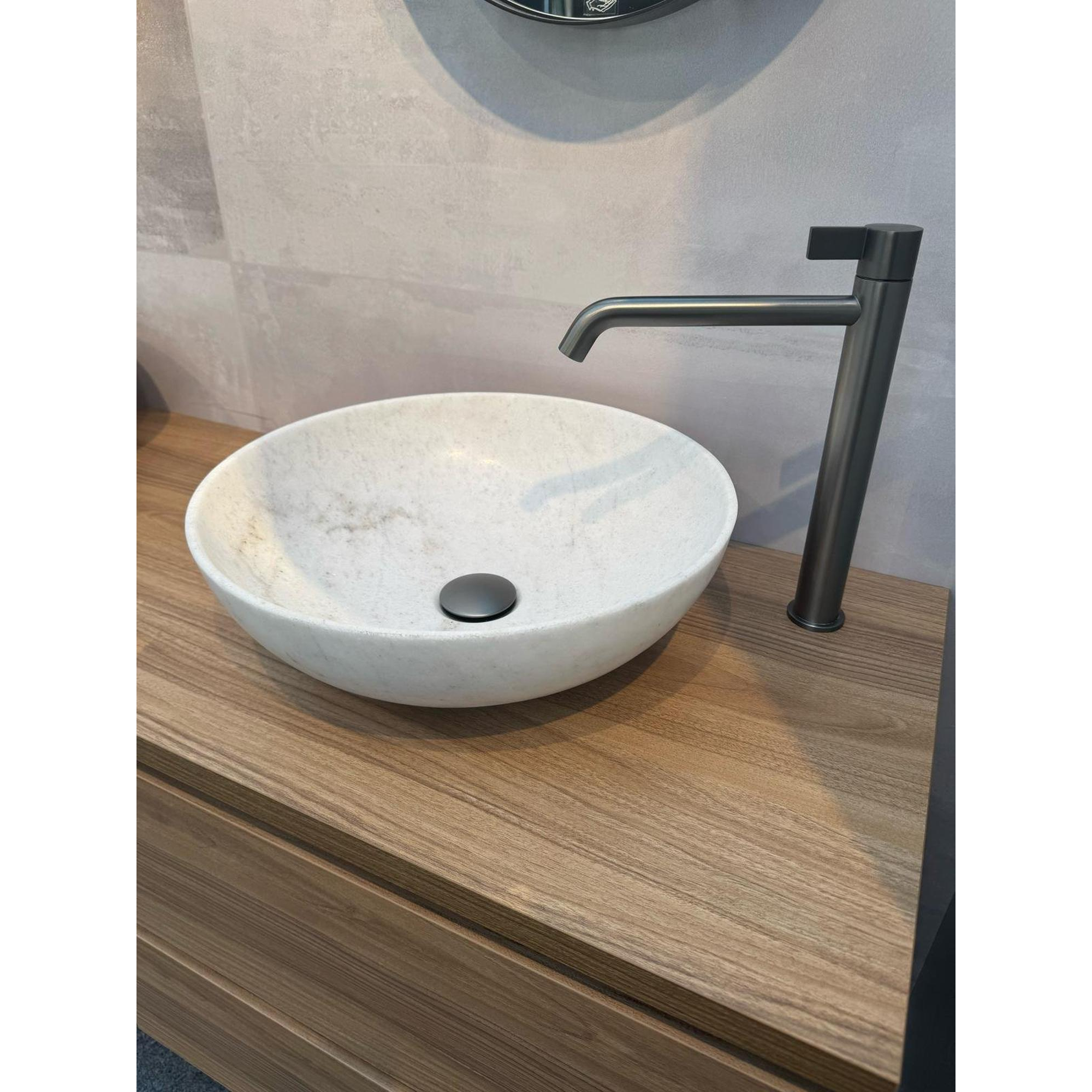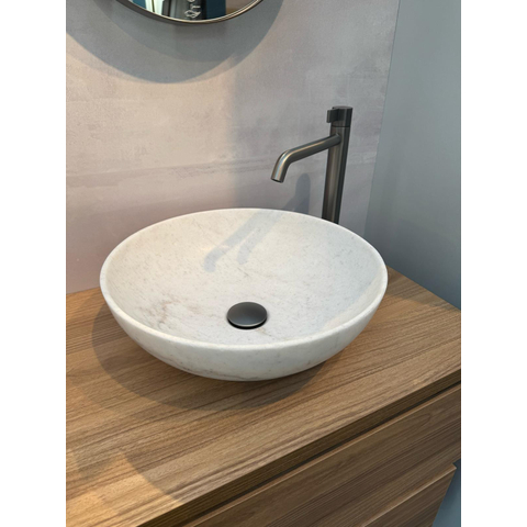 INK Convex 40 Vasque à poser - 40x40x13cm - ronde - pierre naturelle - Marbre blanc mat