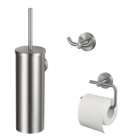 L’acier inoxydable brossé donne à l’ensemble une brillance mate et discrète qui respire le luxe sans être tape-à-l’œil. Comme les trois éléments partagent le même langage de formes et la même finition, vos toilettes paraissent immédiatement beaucoup plus réfléchies et haut de gamme. L’acier inoxydable brossé est en outre très indulgent : les traces de doigts et les petites rayures sont beaucoup moins visibles que sur le chrome poli. Vous conservez ainsi plus longtemps un aspect épuré et soigné. Combinez cet ensemble avec d’autres détails en acier inoxydable, comme un robinet de lave-mains ou un porte-serviette anneau, et vous créez facilement un style moderne et cohérent dans la plus petite pièce.
