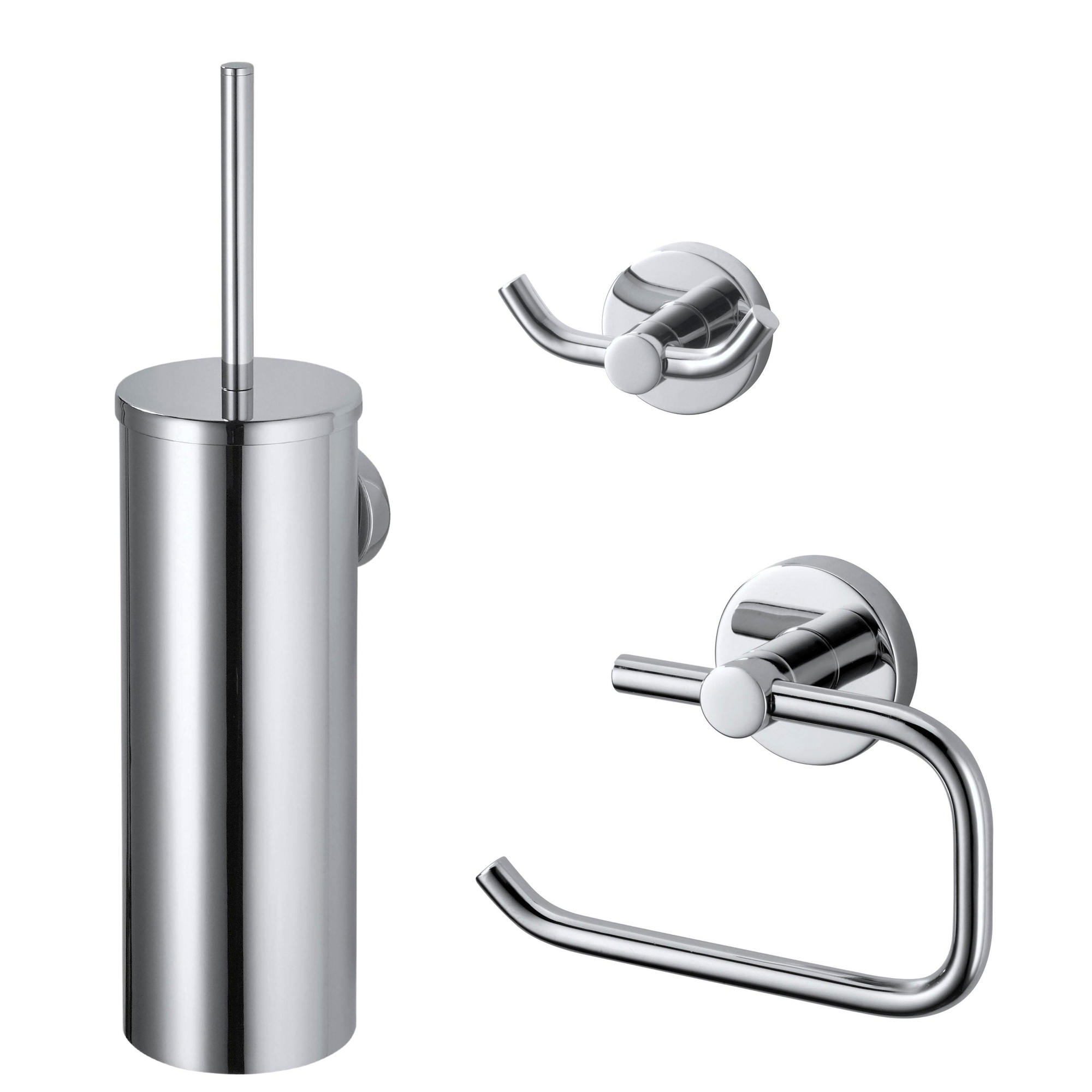 Avec cet ensemble WC complet, vous créez en une seule fois un coin toilette ordonné et élégant. Les trois accessoires assortis apportent calme et harmonie, surtout dans les petits espaces où chaque détail se remarque. Grâce à la finition brillante, cet ensemble d’accessoires s’intègre parfaitement dans les salles de bains modernes et intemporelles, mais trouve également parfaitement sa place dans des toilettes fraîchement rénovées. Si vous recherchez un équipement de base pratique pour de nouvelles toilettes, si vous souhaitez remplacer vos anciens accessoires usés ou simplement créer plus de cohérence dans le style de votre sanitaire, cet ensemble est un choix particulièrement judicieux. Tout est coordonné, afin que vous puissiez vous concentrer sur l’agencement et l’ambiance, sans devoir douter de la bonne combinaison des accessoires.