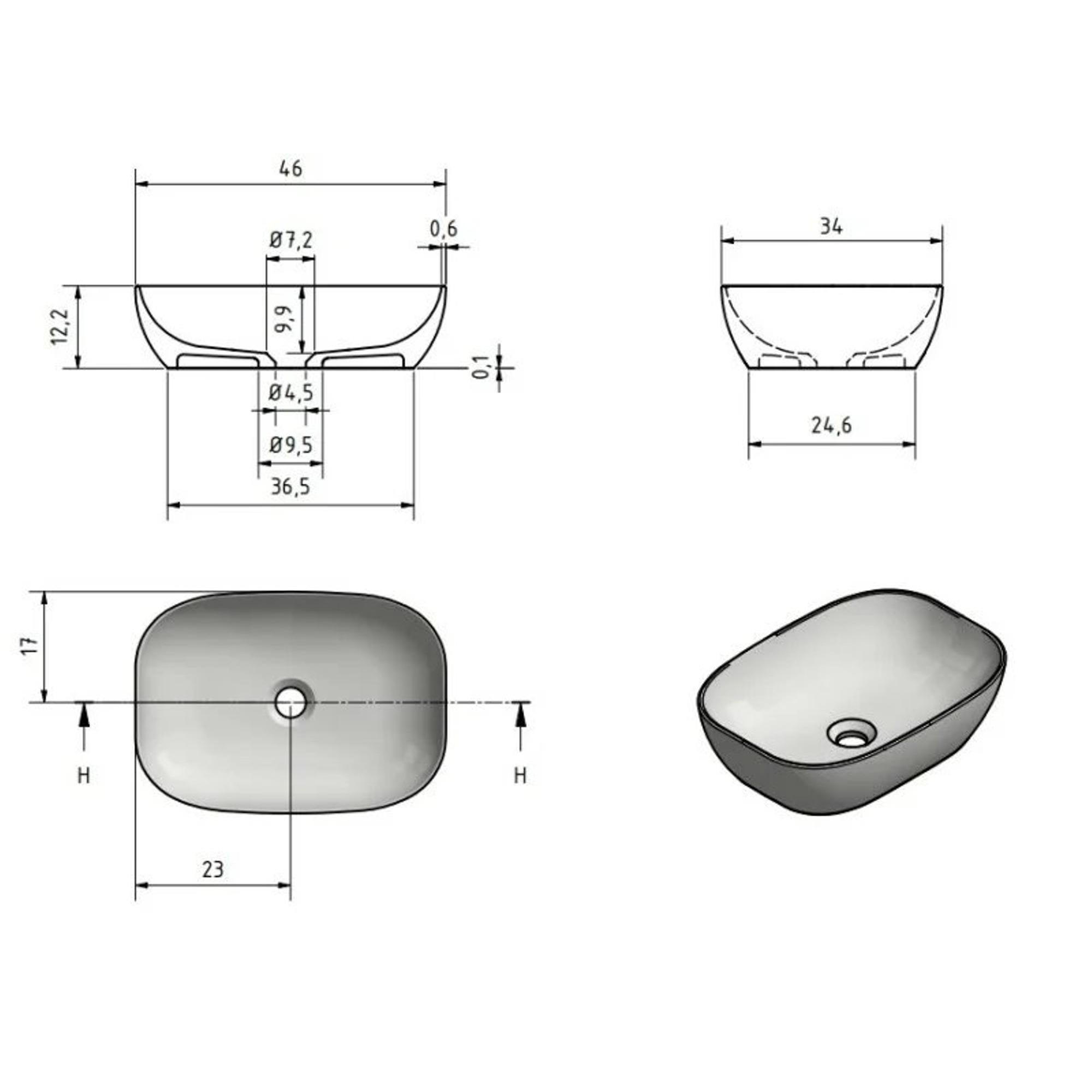 Avec une hauteur de 12,2 cm et une profondeur de 34 cm, cette vasque offre suffisamment d’espace pour vous laver confortablement les mains et le visage, sans qu’une grande quantité d’éclaboussures ne sorte de la vasque. Son format compact la rend en outre très adaptée aux meubles de salle de bains plus étroits ou à une tablette murale flottante dans une niche. Comme aucun trou de robinet n’est pré-percé, vous pouvez choisir vous-même un mitigeur à poser sur le plan ou un robinet encastré dans le mur. L’absence de trop-plein contribue également à une image intérieure calme et épurée, idéale si vous visez un look minimaliste. Vous adaptez ainsi entièrement l’installation à votre façon d’utiliser la vasque et à l’espace disponible.