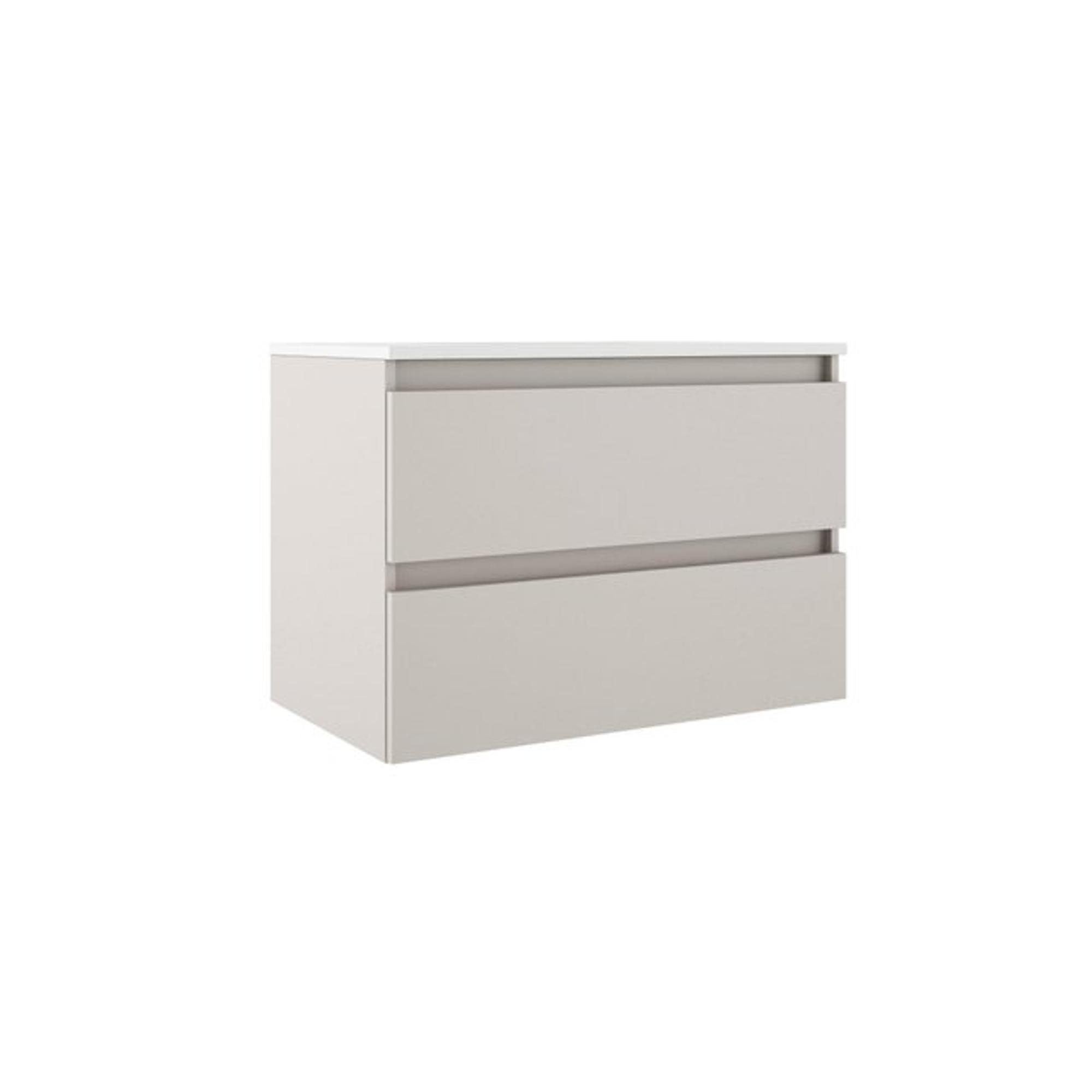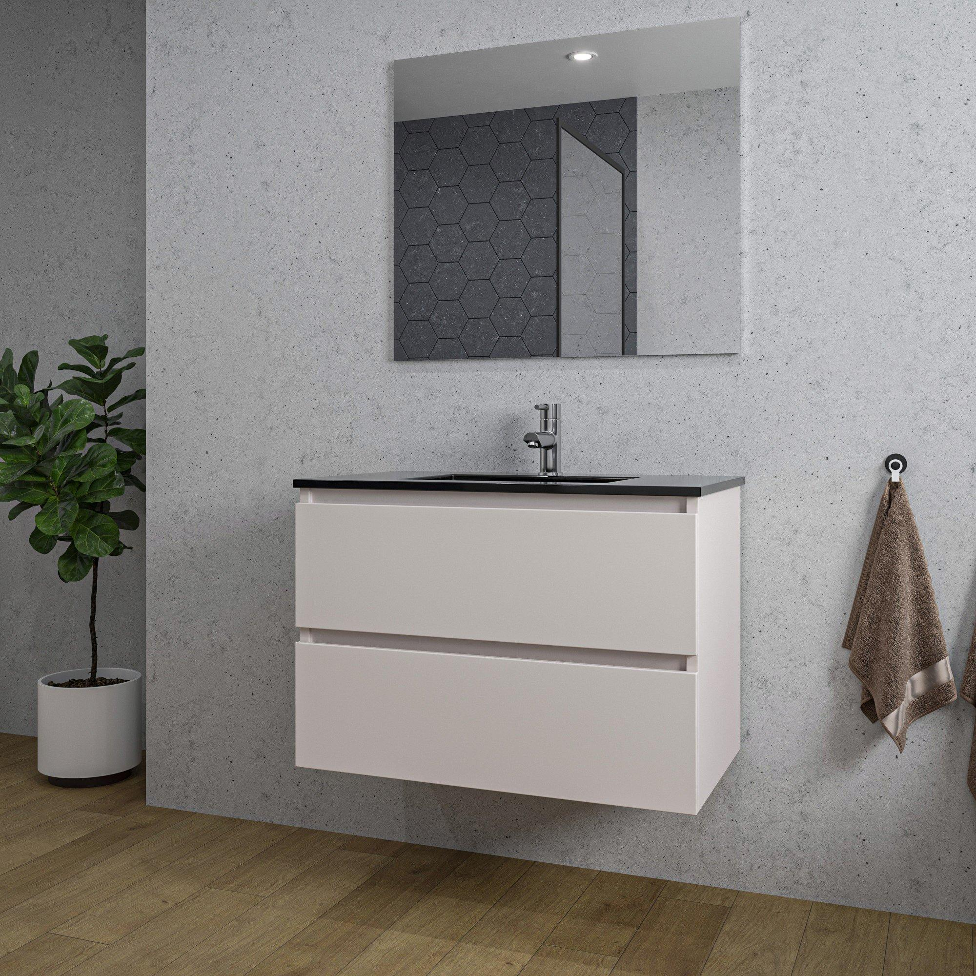 Saniclass Chaci Ensemble meuble de salle de bains - 80x46x55cm - lavabo céramique noir - 1 vasque - 1 trou de robinet - 2 tiroirs - miroir rectangulaire - Cotton mat (beige)