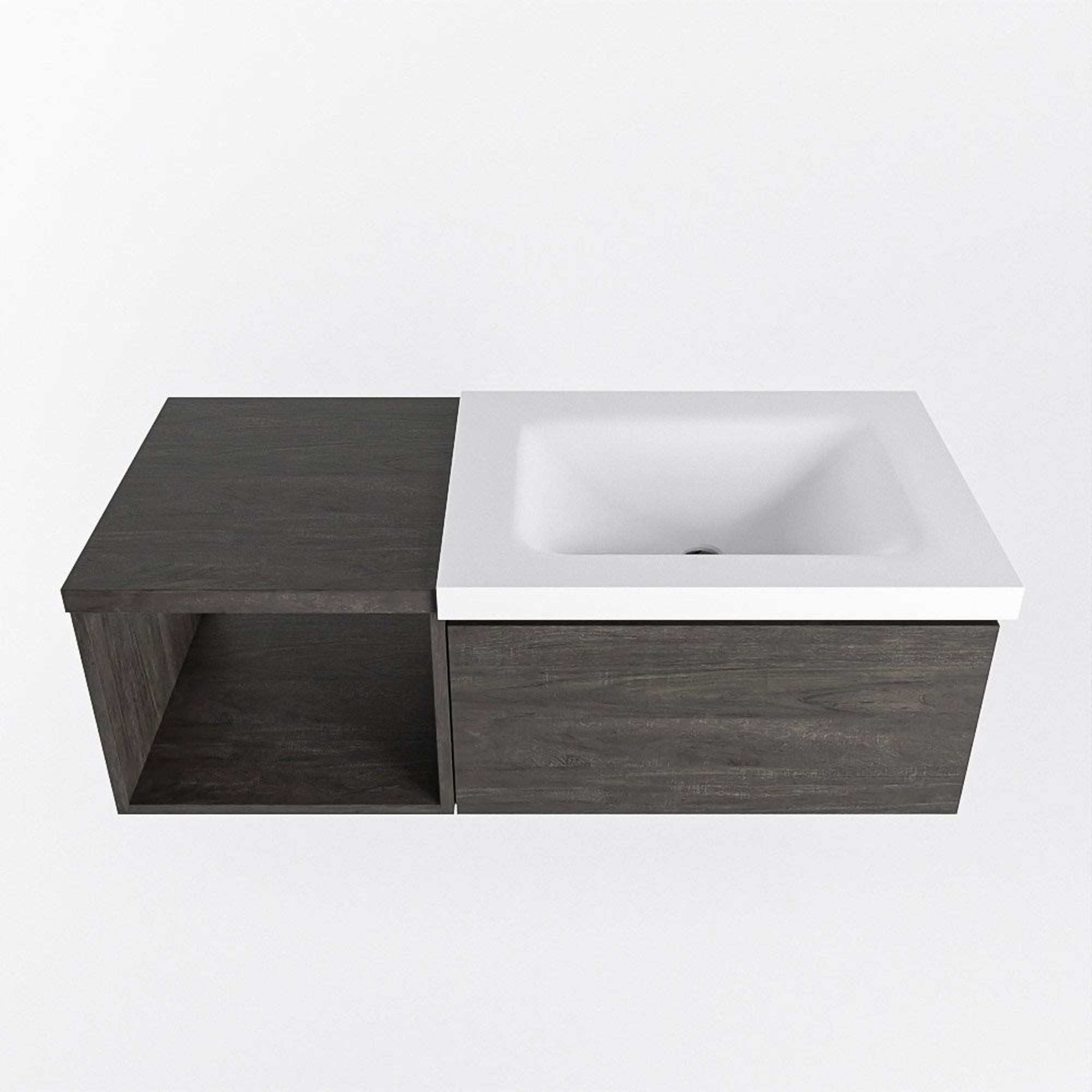 Mondiaz BUKLA Meuble de salle de bains 100 cm avec module ouvert 40 couleur Dark Brown avec 1 tiroir. Lavabo CLOUD à droite 1 trou de robinet couleur Talc.