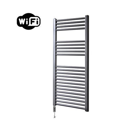 Sanicare HVW Radiateur électrique - 111,8x45cm - 596W - wifi - thermostat - chrome - bas gauche - gunmetal (anthracite)