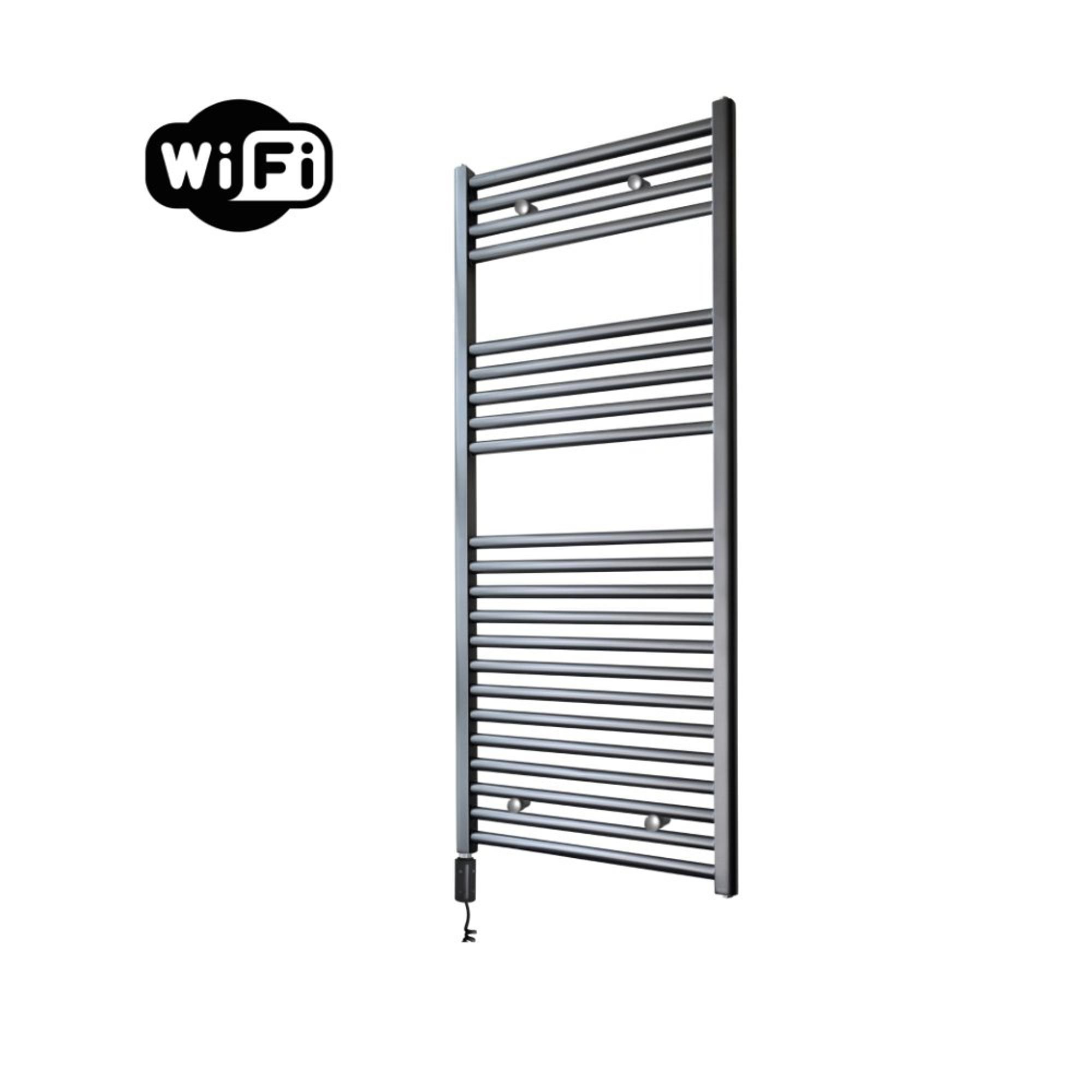 Sanicare HVW Radiateur électrique - 111,8x45cm - 596W - wifi - thermostat - noir - en bas à gauche - gunmetal (anthracite)