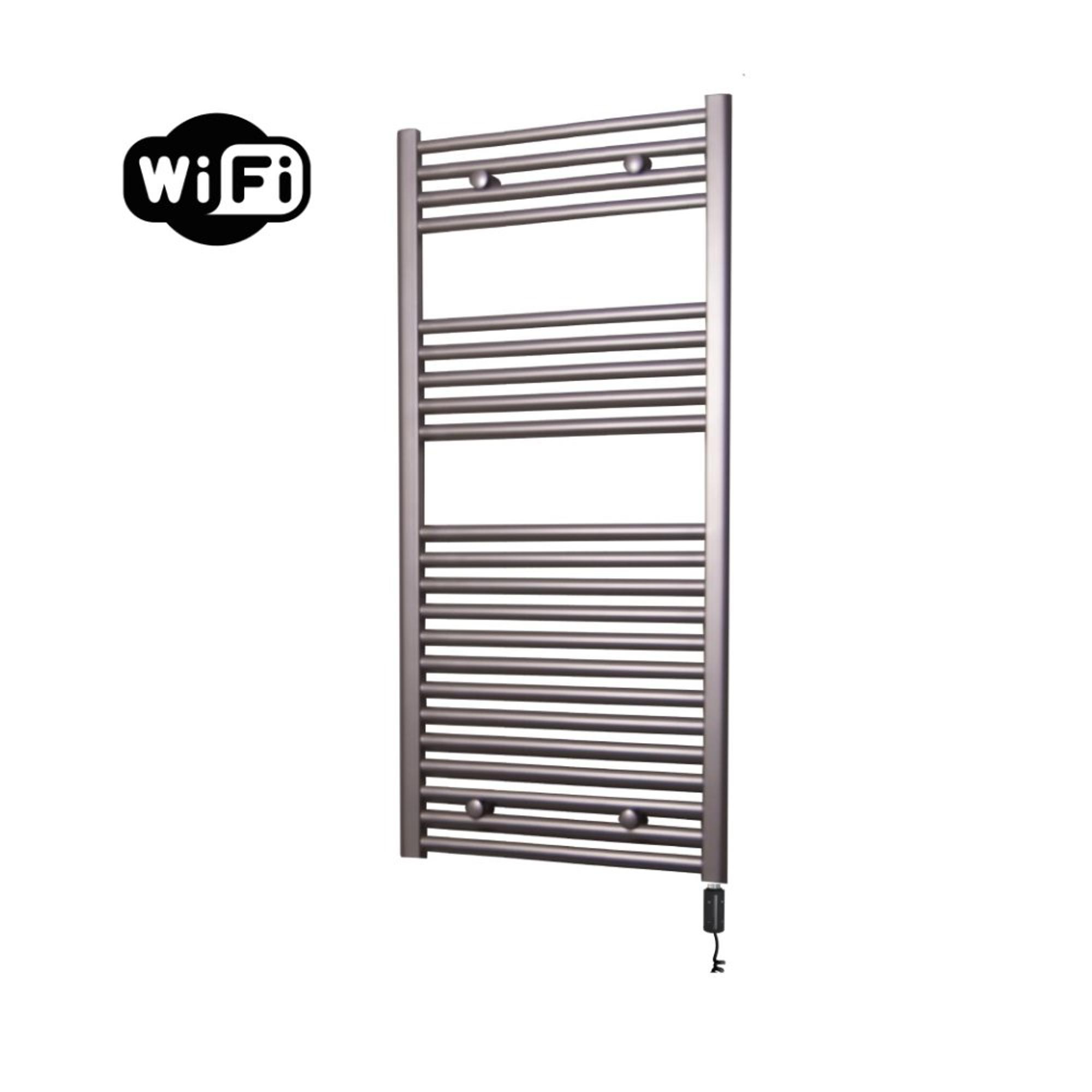 Sanicare HVW Radiateur électrique - 111,8x45cm - 596W - wifi - thermostat - noir - en bas à droite - aspect inox (argent)