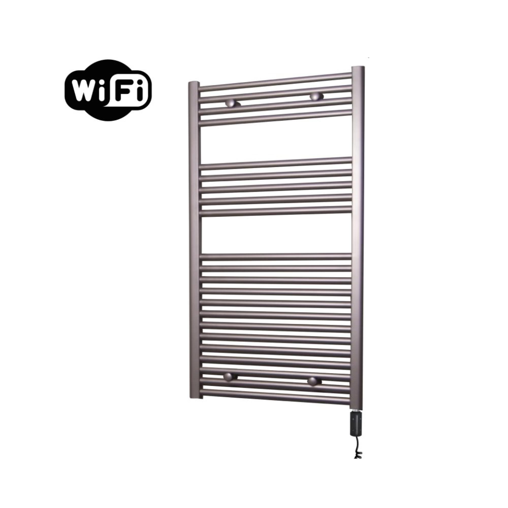 Sanicare HVW Radiateur électrique - 111,8x60cm - 730W - wifi - thermostat - noir - en bas à droite - aspect inox (argent)