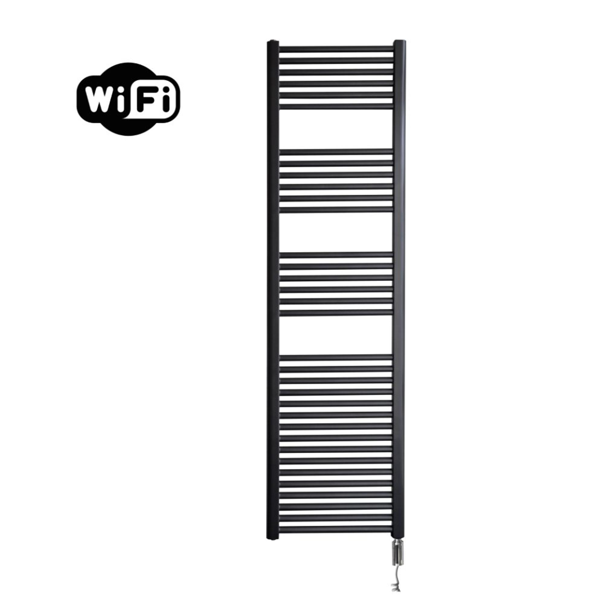 Sanicare HVW Radiateur électrique - 172x45cm - 920W - wifi - thermostat - chrome - en bas à droite - noir mat