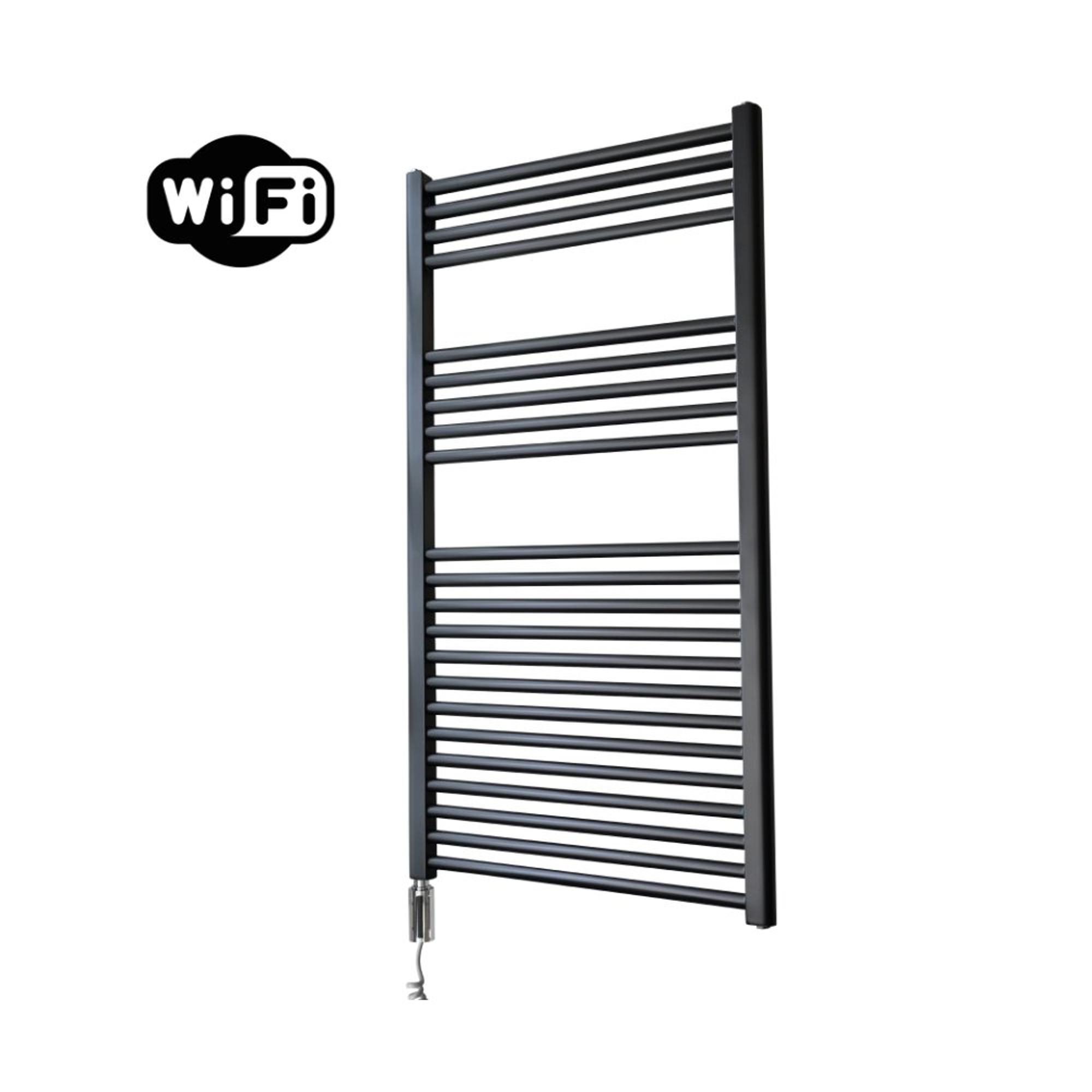 Sanicare HVW Radiateur électrique - 111.8x60cm - 730W - wifi - thermostat - chrome - en bas à gauche - noir mat