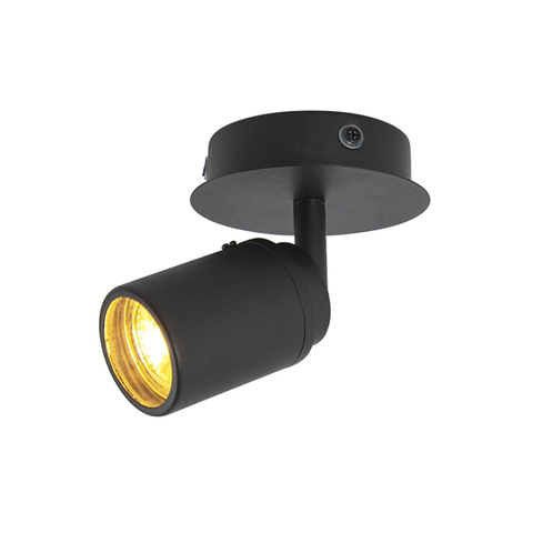 QAZQA Ducha plafonnier de salle de bains - 10x10cm - 1 spot - IP44 - noir mat