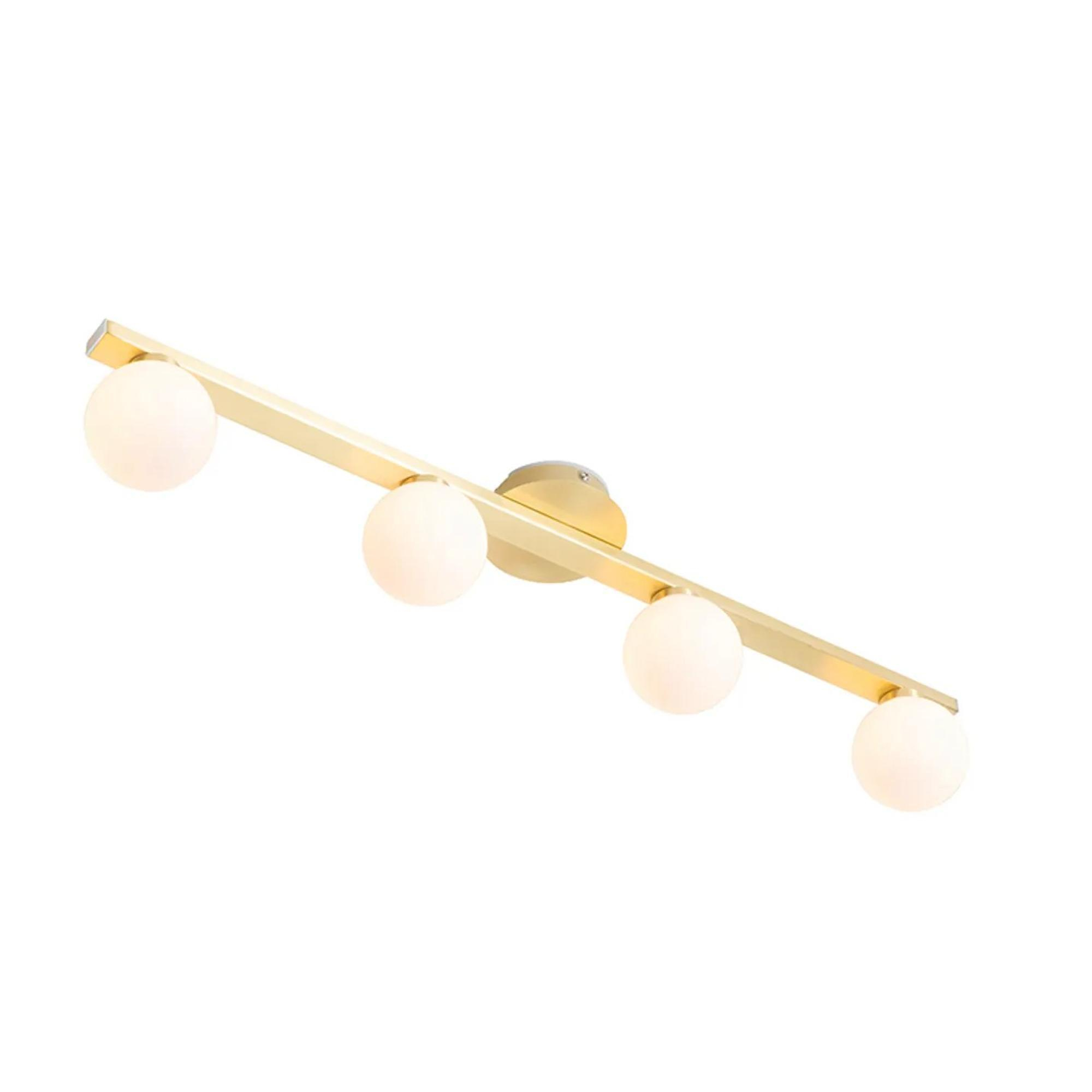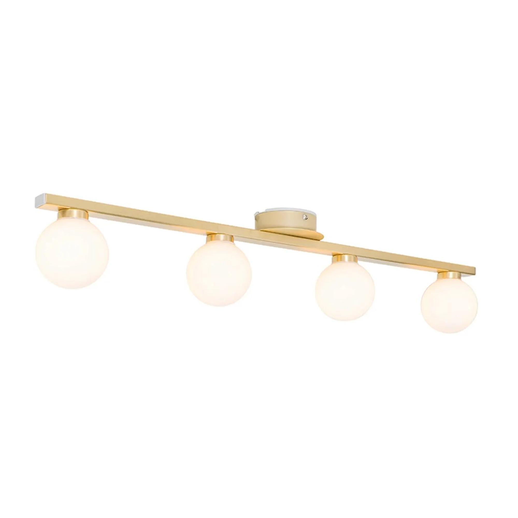 Aimeriez-vous éclairer votre salle de bains avec la même ambiance que le reste de votre intérieur, sans sacrifier la sécurité et la fonctionnalité ? Dans ce cas, un plafonnier généreux avec plusieurs points lumineux est un choix judicieux. Grâce au design allongé et aux quatre spots, vous créez facilement un éclairage de base uniforme, idéal au-dessus de la baignoire, près du lavabo ou dans une salle de bains un peu plus grande. La combinaison d’une finition dorée avec du verre clair donne immédiatement un aspect chic, de sorte qu’un espace simple gagne tout de suite en caractère. Grâce à son exécution étanche aux éclaboussures, ce luminaire convient en outre parfaitement à la salle de bains, tandis qu’avec les bonnes sources lumineuses et un variateur externe, vous passez sans effort d’une lumière claire et pratique le matin à un éclairage chaud et relaxant le soir.