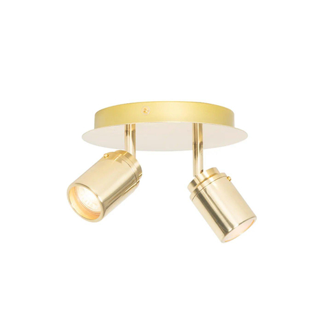 - Spot de plafond compact avec deux points lumineux orientables, idéal pour un éclairage de salle de bains à la fois fonctionnel et d’ambiance