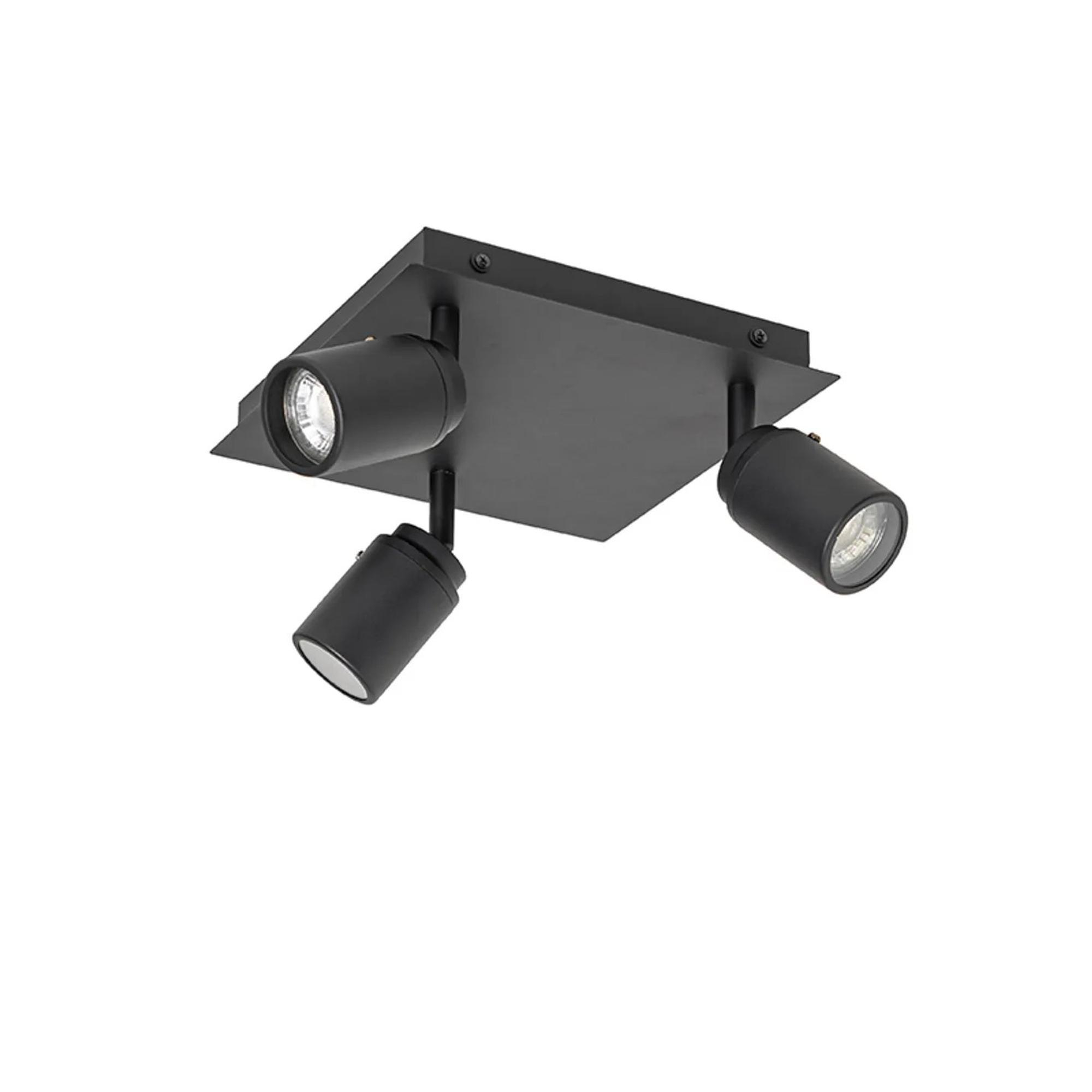 QAZQA Ducha plafonnier de salle de bains - 23x23 cm - 3 spots - IP44 - carré - noir mat